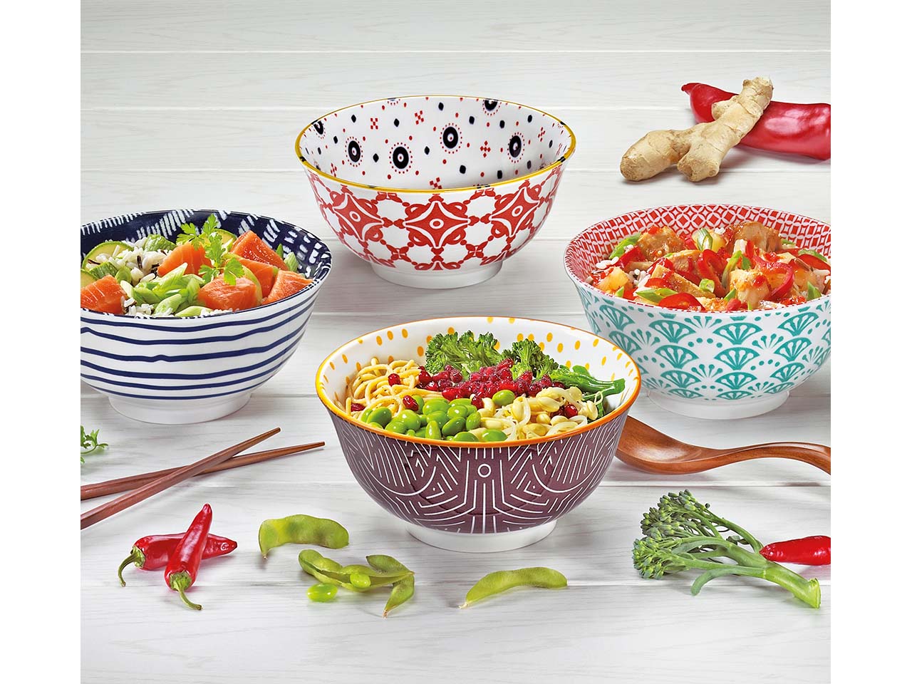 - Farbenfrohe Schüssel aus gebranntem Porzellan