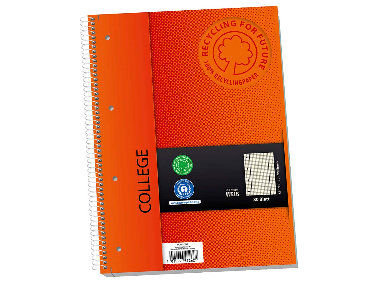 Für den Collegeblock wird 100 % Recyclingpapier verwendet.
