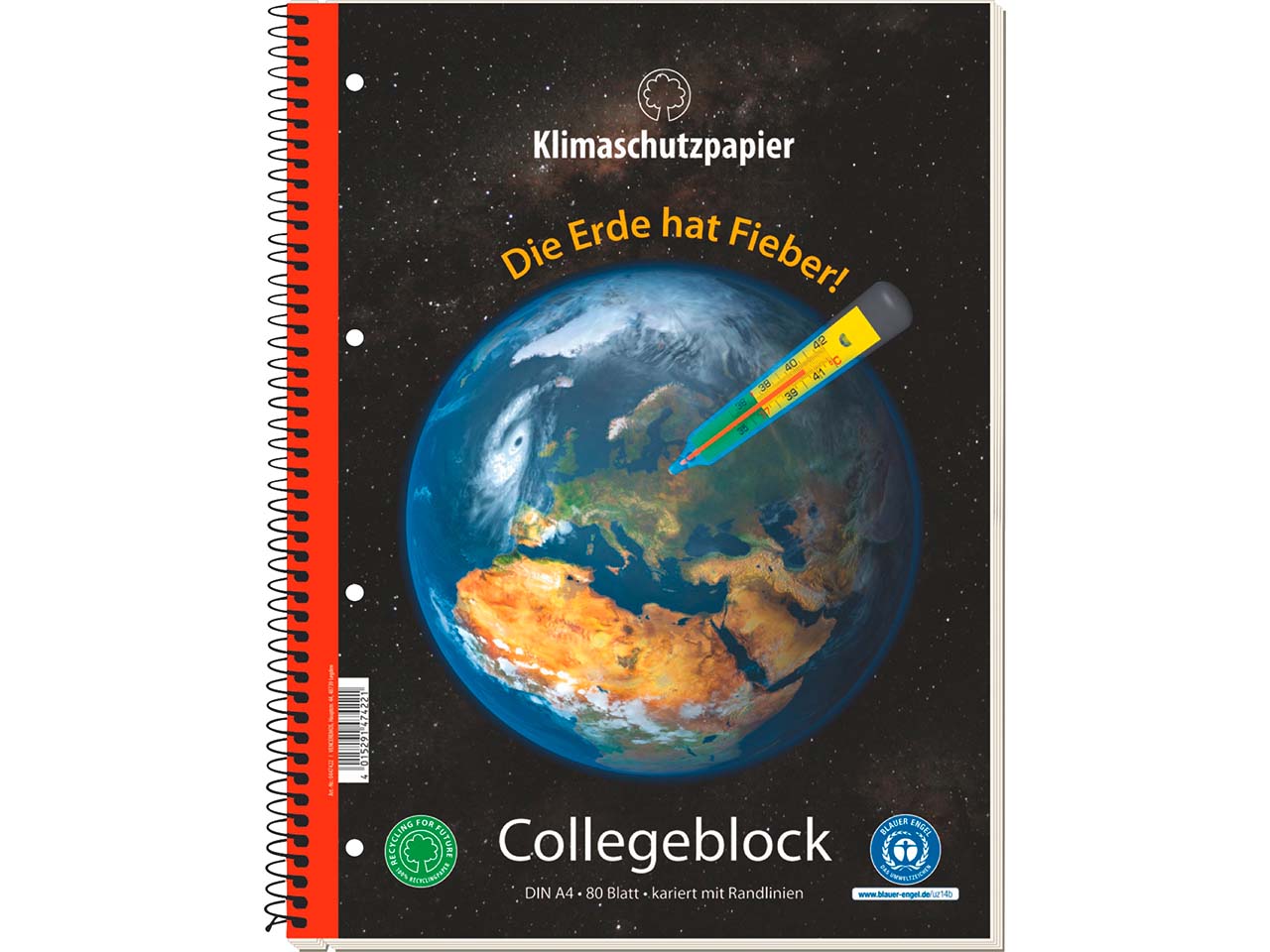 Für den Collegeblock wird 100 % Recyclingpapier verwendet.