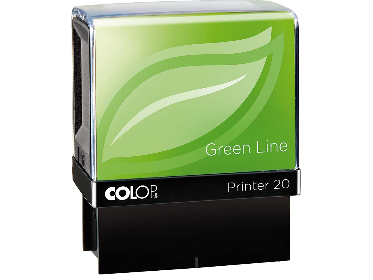 Der Colop "Green Line" P20 Stempel wird zu 80 % aus Recycling-Kunststoff hergestellt.
