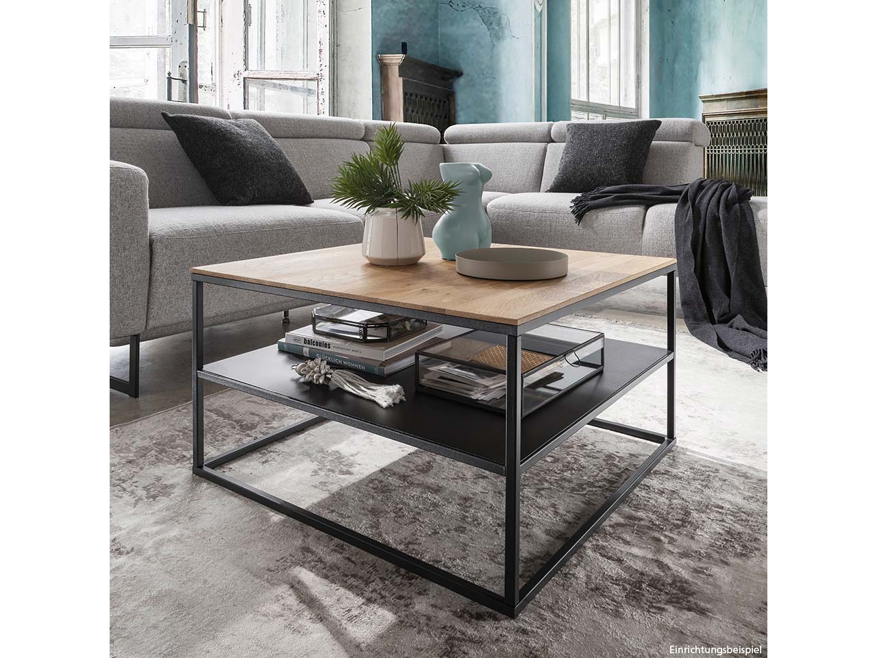 Klare Linien und Minimalismus machen diesen Couchtisch zu einem einzigartigen Möbelstück. Die quadratische Form wirkt besonders modern und fast futuristisch. Dabei ergänzen sich die Natürlichkeit der massiven, geölten Tischplatte aus Wildeiche in FSC-zertifizierter Qualität und das schwarz pulverbeschichtete Metall optimal. Die Ablage ist ideal, um Magazine, Bücher, etc. ordentlich aufzubewahren. B 70 x T 70 x H 40 cm.