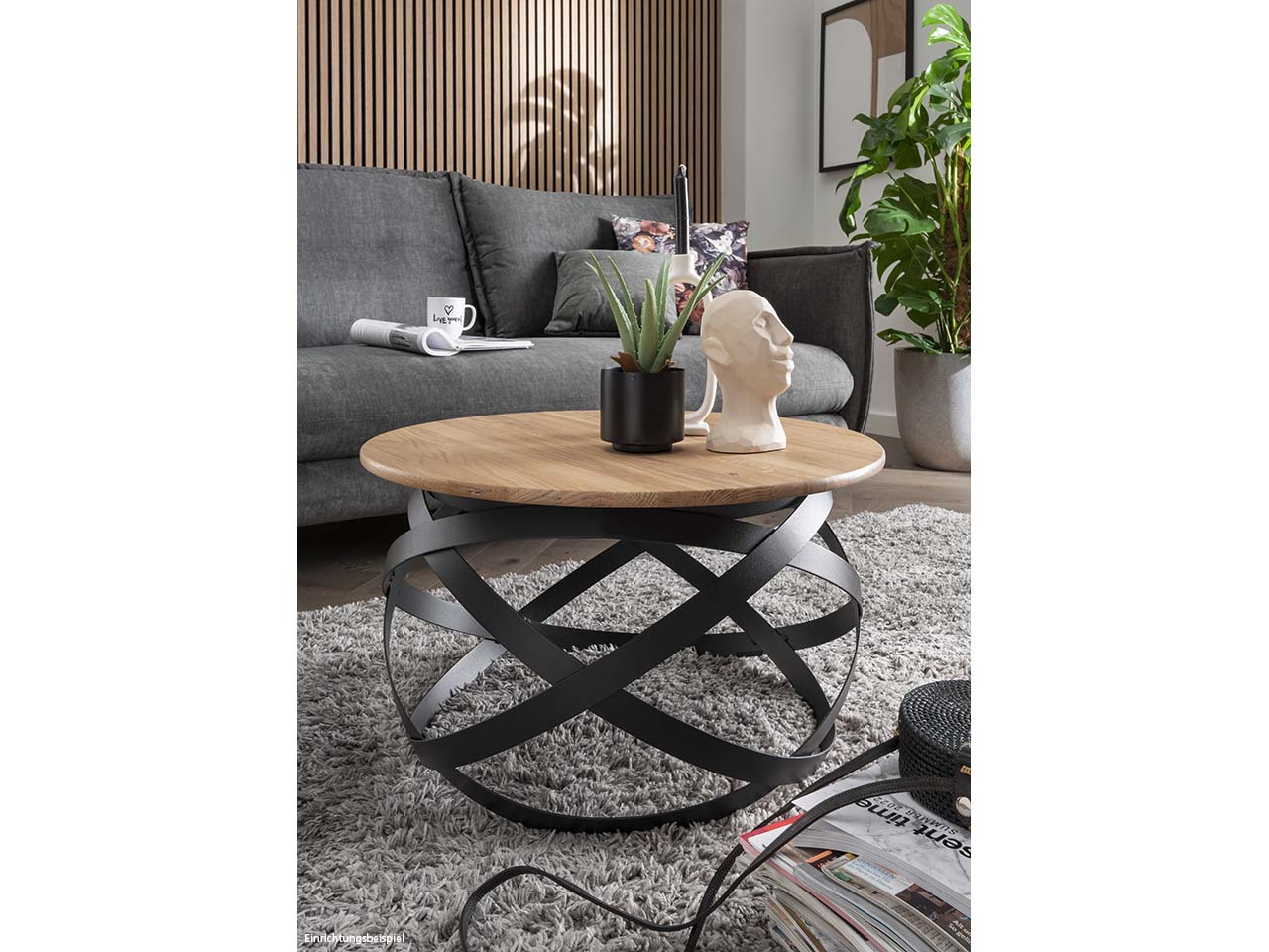 Ein Couchtisch, der viel mehr ist, als nur ein Möbelstück. Mit dem kunstvollen Gestell und den geschwungenen Formen bringt der Tisch moderne Harmonie in Wohnräume. Dabei harmonieren die massive, geölte Wildeiche in FSC-zertifizierter Qualität und der schwarz gepulverte Stahl auf exzellente Weise miteinander. Das raffinierte Design macht aus dem Couchtisch ein echtes Designobjekt mit praktischem Nutzen. B 70 x T 70 x H 40 cm.