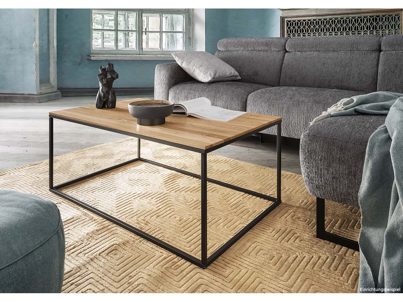 Klare Linien und ein minimalistisches, modernes Design zeichnen diesen Couchtisch aus. Die Tischplatte besteht aus massiver, geölter Wildeiche in FSC-zertifizierter Qualität, die mit ihrer hellen Maserung Natürlichkeit in Wohnräume bringt. Das offene Gestell aus schwarz pulverbeschichtetem Stahl unterstreicht die zeitlose Optik. Der Couchtisch fügt sich spielend leicht in bestehende Raumkonzepte ein und bereitet über viele Jahre Freude. B 100 x T 60 x H 40 cm.