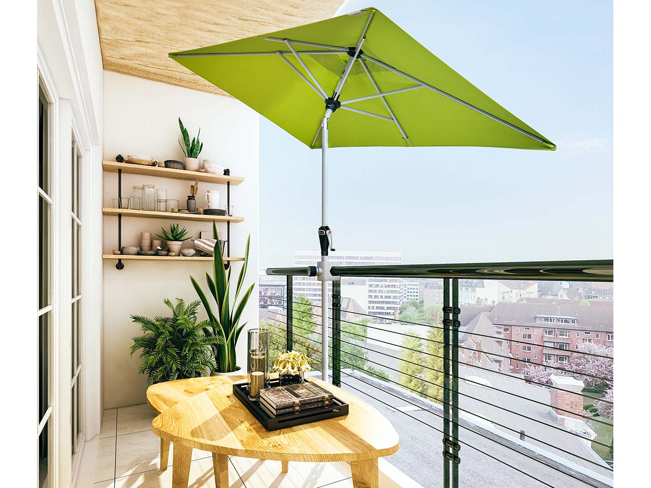 Praktisches Zubehör, um Sonnenschirme anzubringen, wenn man nicht genug Platz für einen Schirmsockel hat! Das Beste: Die Balkonklammer eignet sich für runde und eckige Balkongeländer gleichermaßen. Durch den Drehknopf ist die Anbringung ganz einfach und intuitiv. Wetterfest ist die Halterung auch, denn sie ist aus robustem Aluminium gefertigt. Die Balkonklammer ist für Sonnenschirme mit einem Stockmesser bis Ø 32 mm. Der Rohrdurchmesser des Geländers sollte zwischen 30 und 55 mm liegen.