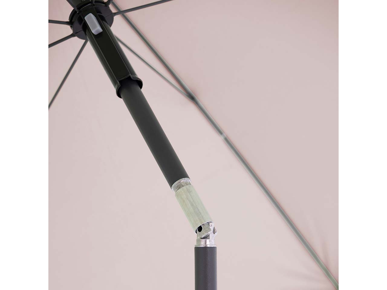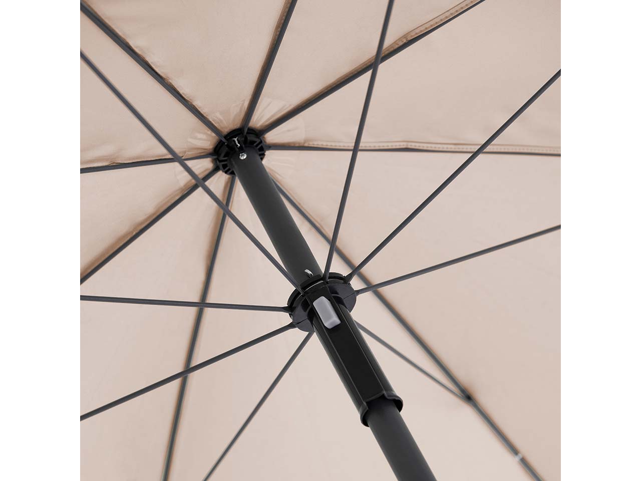 Das Schirmdach besteht aus chlorfreiem Polyester. Das Material ist wasserabweisend, witterungsbeständig und robust. Durch die exzellente Strapazierfähigkeit ist das Schirmdach außerordentlich langlebig und haltbar, sodass der Sonnenschirm über viele Jahre Freude bereitet. Zur langlebigen Qualität trägt auch das Gestell aus stabilem, langlebigem Stahl bei.