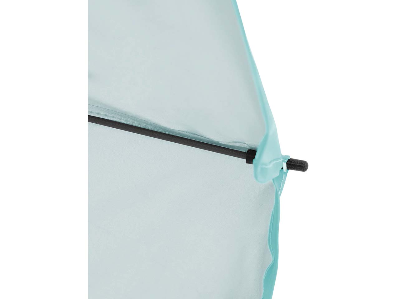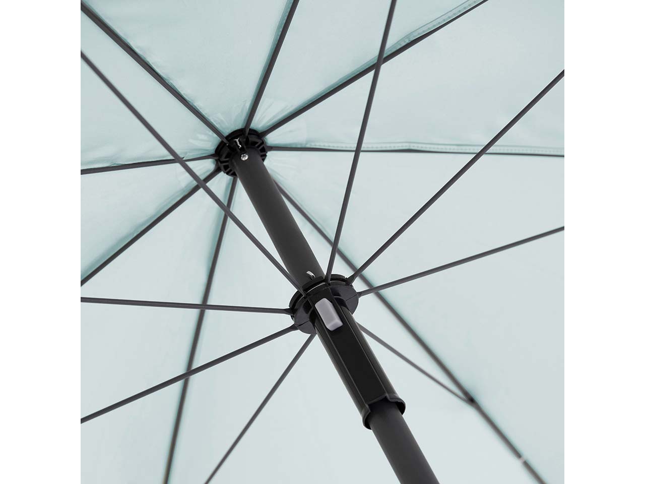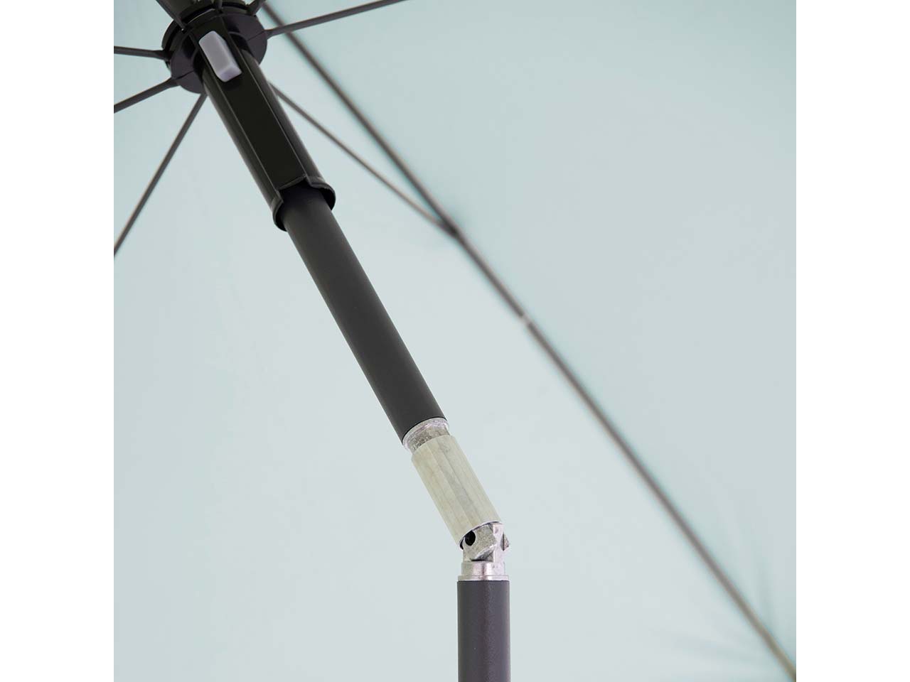 Das Schirmdach besteht aus chlorfreiem Polyester. Das Material ist wasserabweisend, witterungsbeständig und robust. Durch die exzellente Strapazierfähigkeit ist das Schirmdach außerordentlich langlebig und haltbar, sodass der Sonnenschirm über viele Jahre Freude bereitet. Zur langlebigen Qualität trägt auch das Gestell aus stabilem, langlebigem Stahl bei.