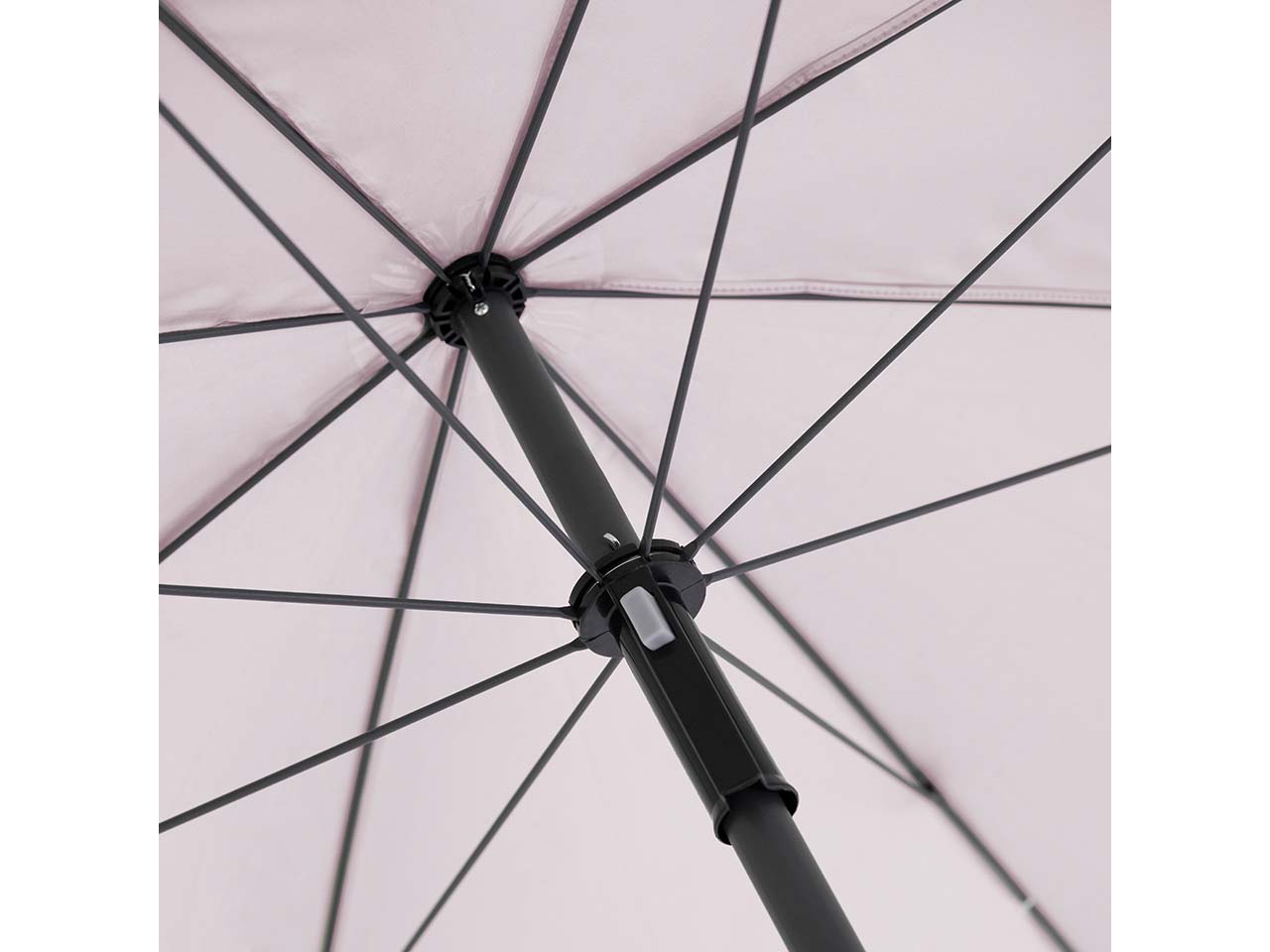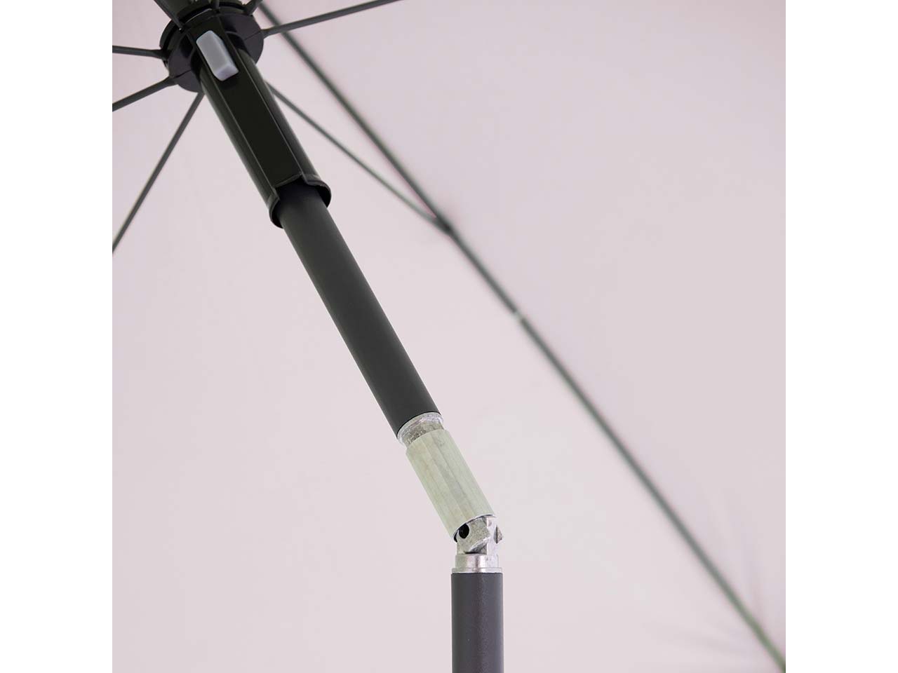 Das Schirmdach besteht aus chlorfreiem Polyester. Das Material ist wasserabweisend, witterungsbeständig und robust. Durch die exzellente Strapazierfähigkeit ist das Schirmdach außerordentlich langlebig und haltbar, sodass der Sonnenschirm über viele Jahre Freude bereitet. Zur langlebigen Qualität trägt auch das Gestell aus stabilem, langlebigem Stahl bei.