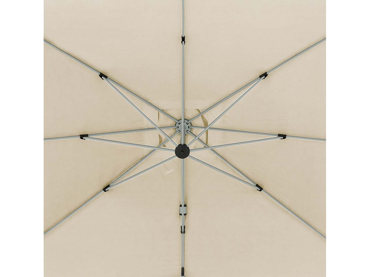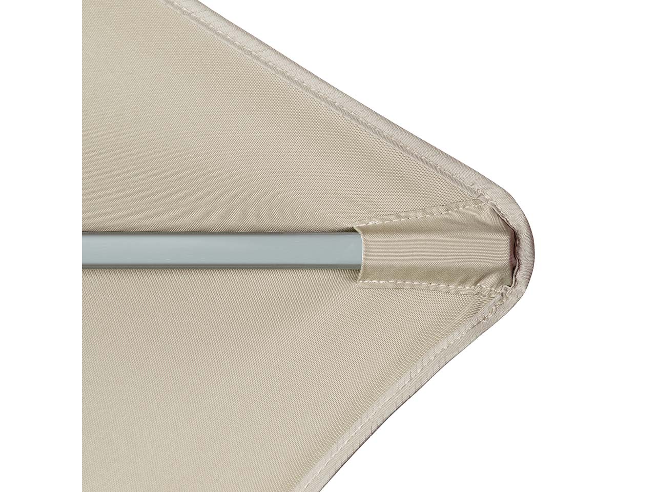 Das Schirmdach besteht aus chlorfreiem Polyester in schwerer 180 g/m²-Qualität. Das Material ist wasserabweisend, witterungsbeständig und robust. Durch die exzellente Strapazierfähigkeit ist das Schirmdach außerordentlich langlebig und haltbar, sodass der Sonnenschirm über viele Jahre Freude bereitet. Zur langlebigen Qualität trägt auch das Gestell aus stabilem, langlebigem Aluminium bei.