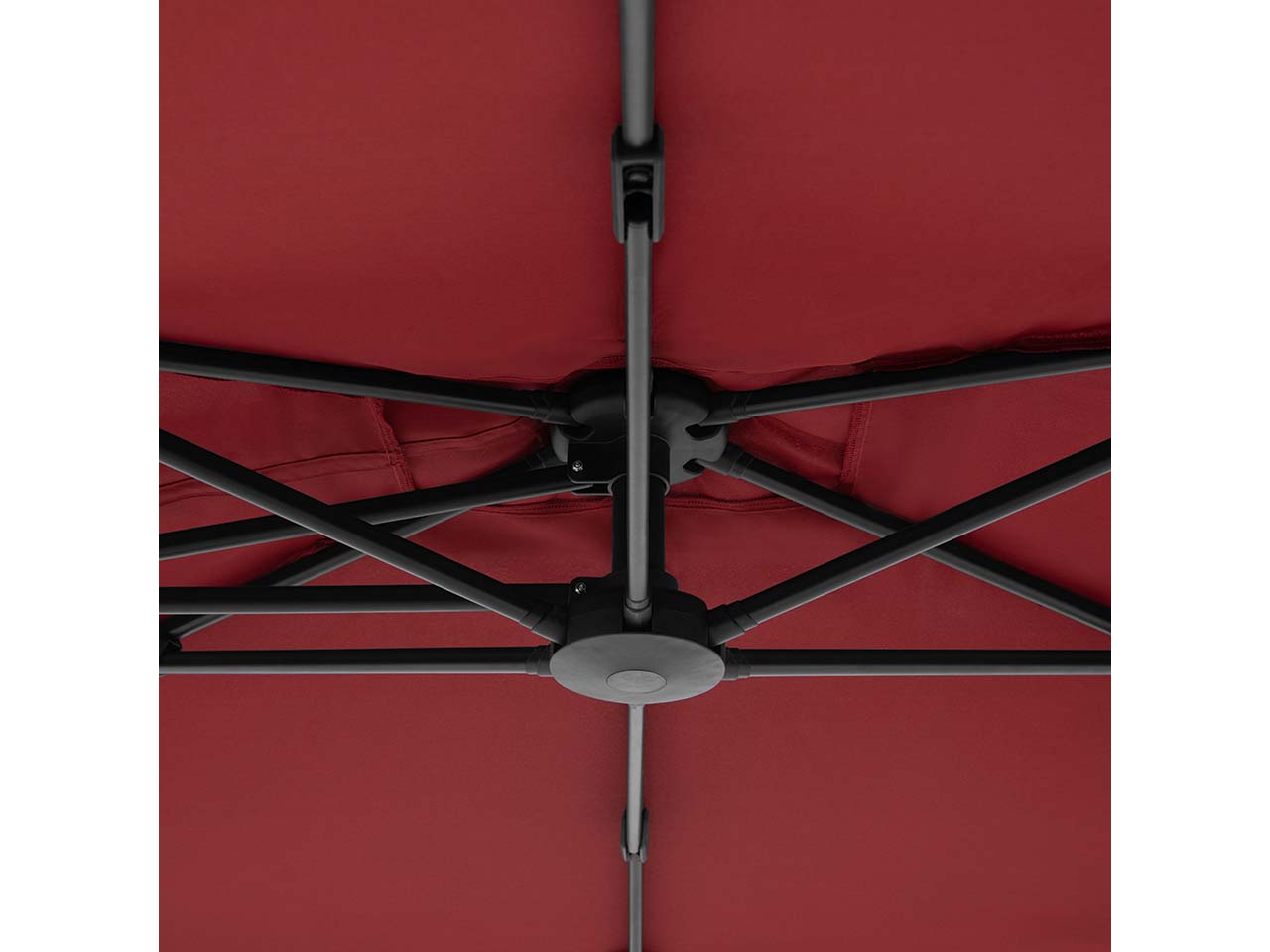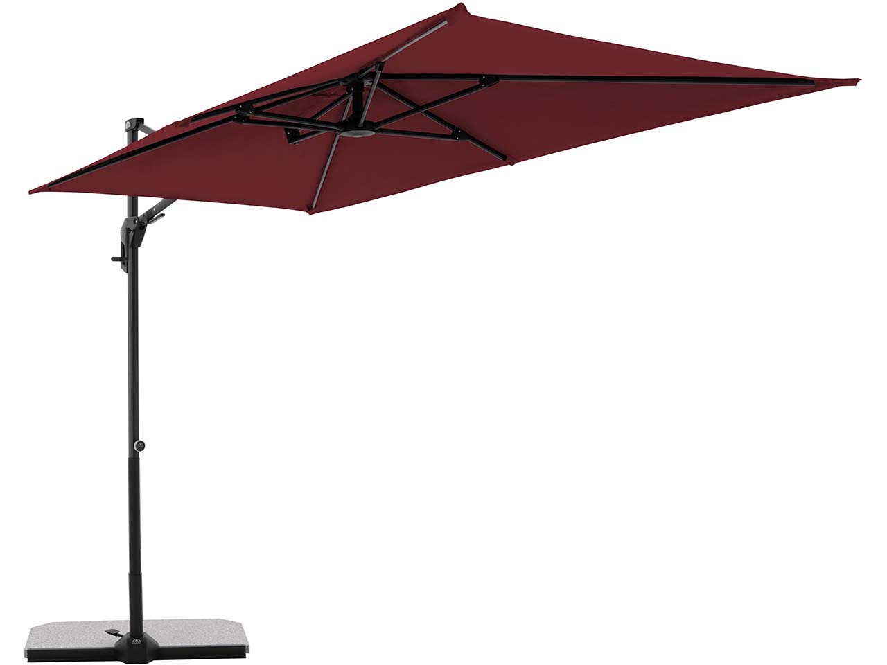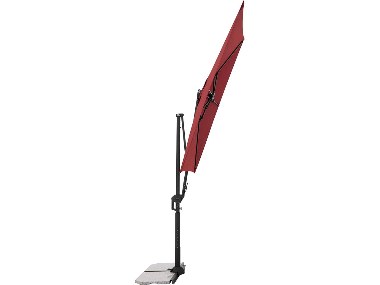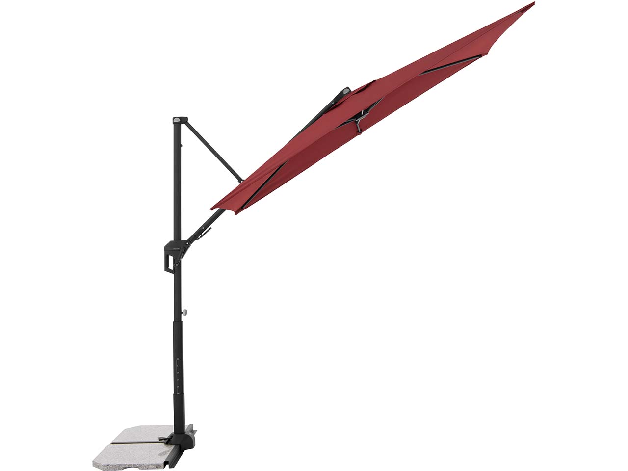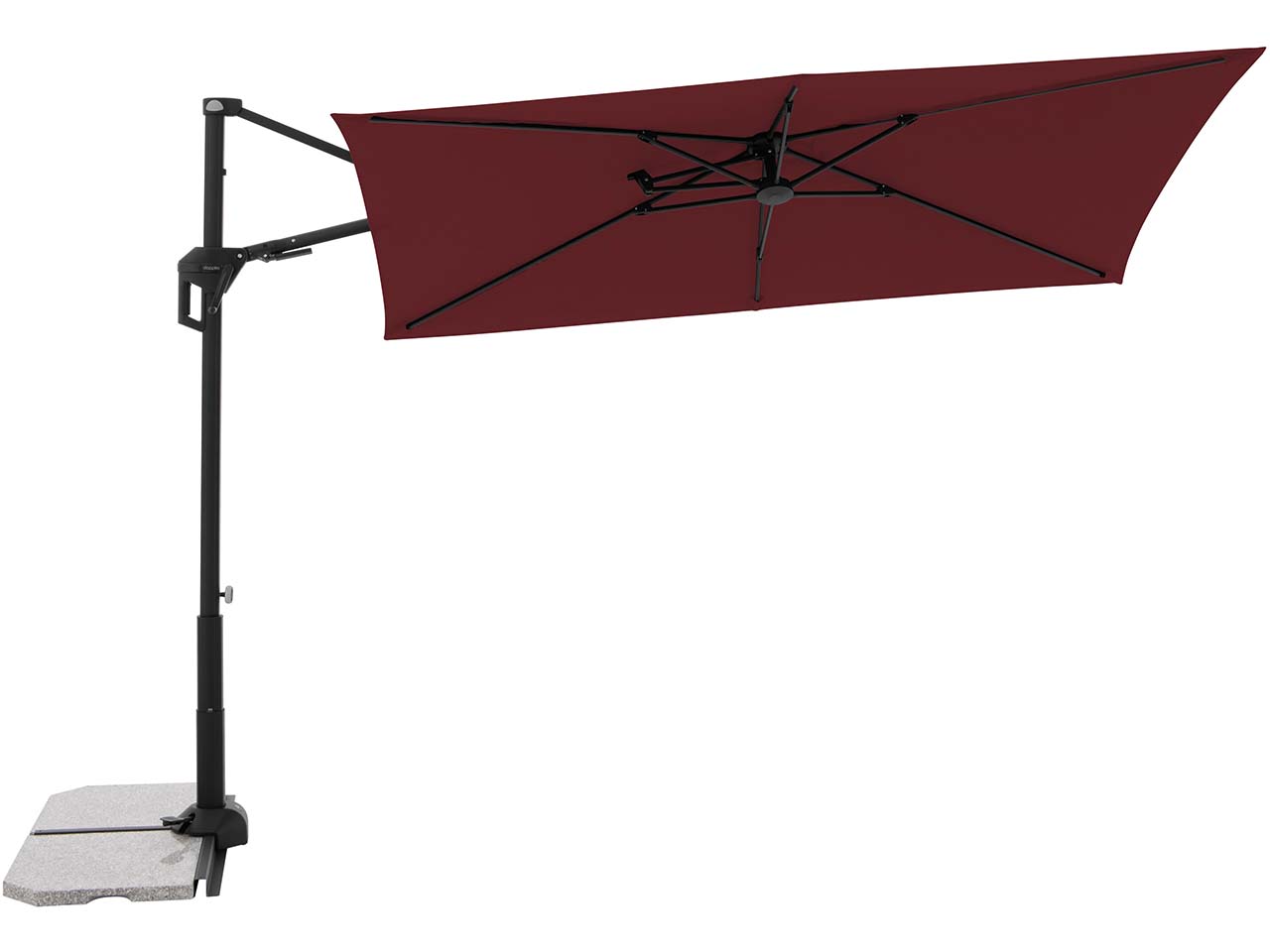 Das Standkreuz des Sonnenschirms bietet Platz für vier Platten à 50 x 50 x 4 cm. Es wird ein Schirmständergewicht von mind. 70 kg empfohlen.