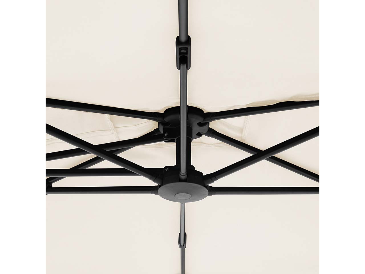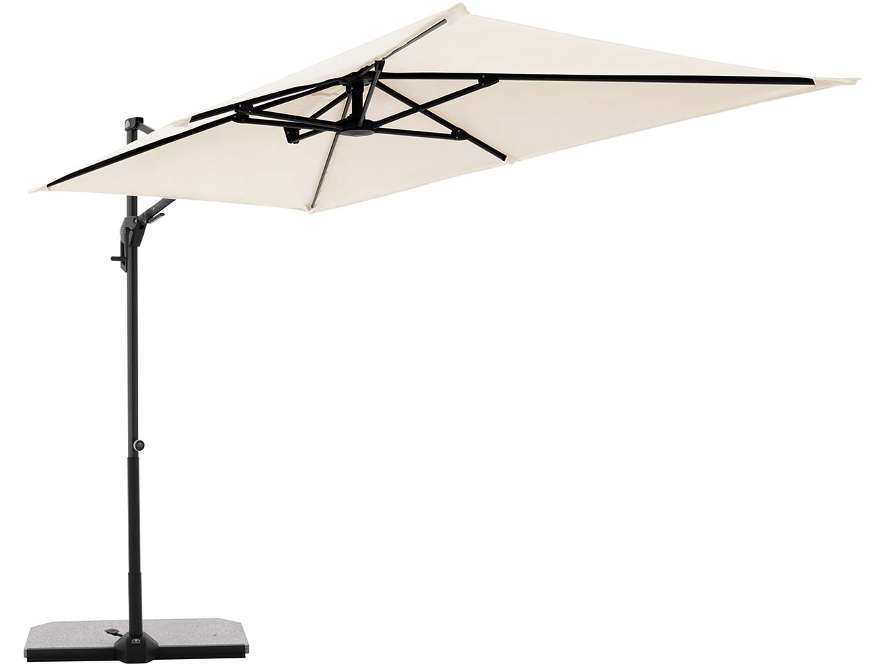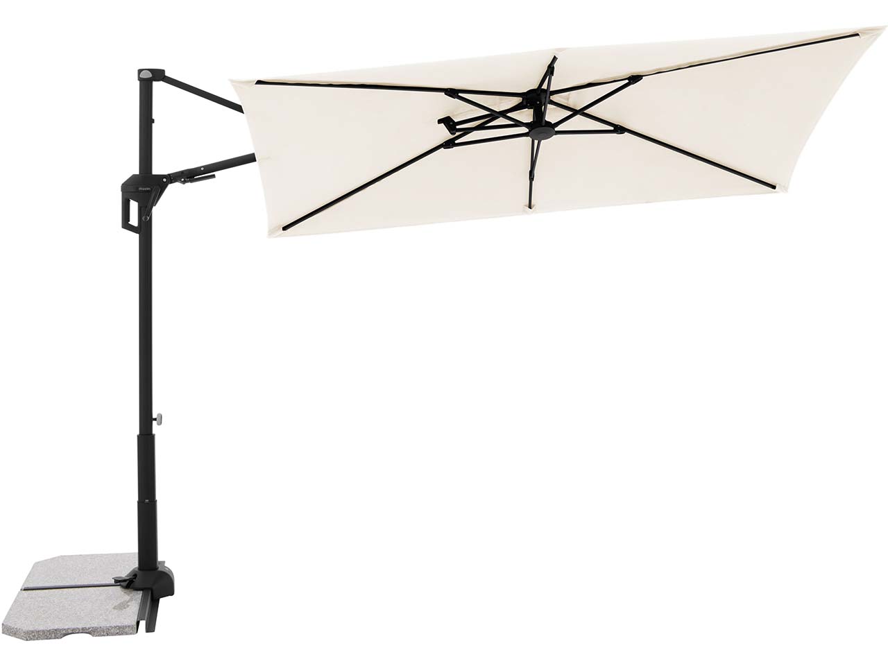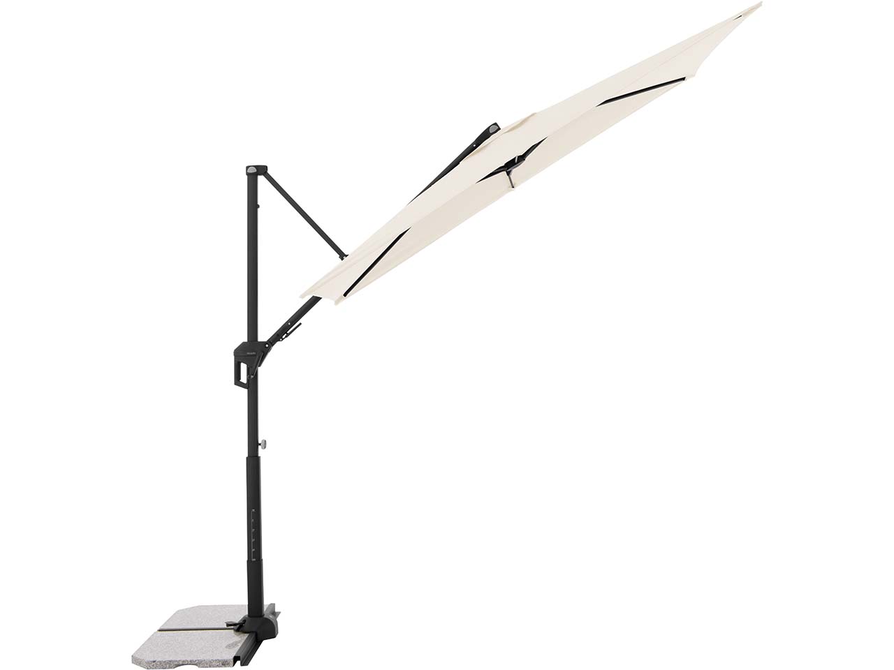 Das Standkreuz des Sonnenschirms bietet Platz für vier Platten à 50 x 50 x 4 cm. Es wird ein Schirmständergewicht von mind. 70 kg empfohlen.