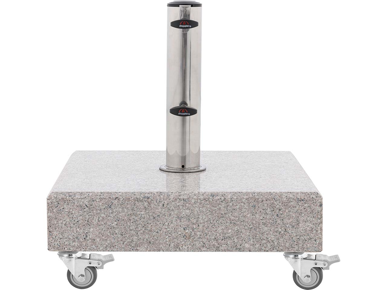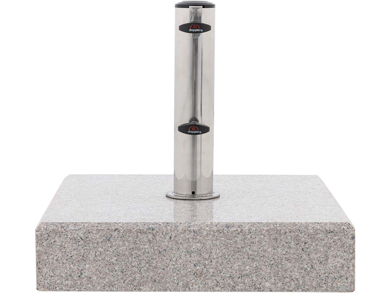 Der Granitsockel von doppler sorgt für stabilen Halt bei Sonnenschirmen bis 200 cm Durchmesser. Das Edelstahlrohr verleiht ihm eine moderne, hochwertige Optik. Er ist aus Naturgranit gefertigt, wodurch es Farb- und Strukturabweichungen kommen kann. Der Granitsockel verfügt über praktische Griffmulden und wird mit Reduzierringen geliefert.
