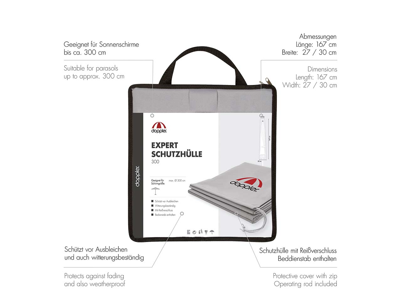 doppler Schutzhülle "Expert" für Sonnenschirme bis 300 cm, mit RV, Tragetasche, Stab
