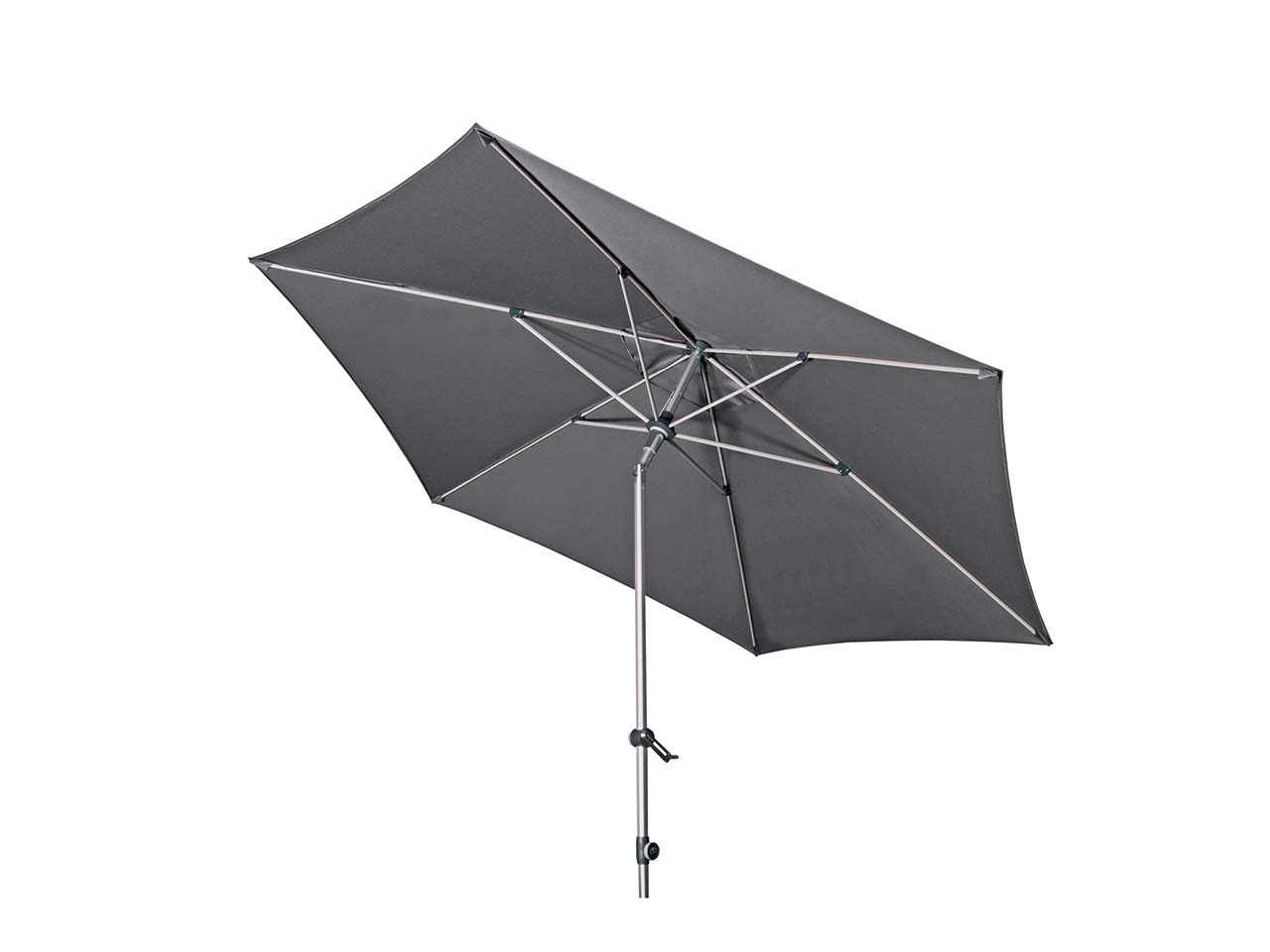 So lässt sich der Sommer auf der Terrasse oder im Garten stilvoll genießen: Der speziell für anspruchsvolle Nutzer entwickelte Sonnenschirm, schützt effektiv vor direkter Sonneneinstrahlung! Das Beste: Über die Auto-Tilt-Funktion ist es möglich, den Schirm in die gewünschte Knickposition zu bringen. Dafür hat der Schirm eine leichtgängige Designkurbel, die auch zum Öffnen genutzt wird. Um das Schirmdach noch besser an den Sonnenstand anzupassen, verfügt der Schirm über eine einfach zu bedienende Höhenverstellung (ca. 30 cm). Schutz vor Wind, Wetter und Sonne bietet auch das Dach: Das 180 g/m² schwere Polyestergewebe ist wasserabweisend und hat den höchsten UV-Schutz von 80+. Für die Reinigung lässt sich der Bezug abnehmen und per Handwäsche reinigen. Der Sonnenschirm ist für verschiedene Befestigungsvarianten geeignet. Ø 280 cm.