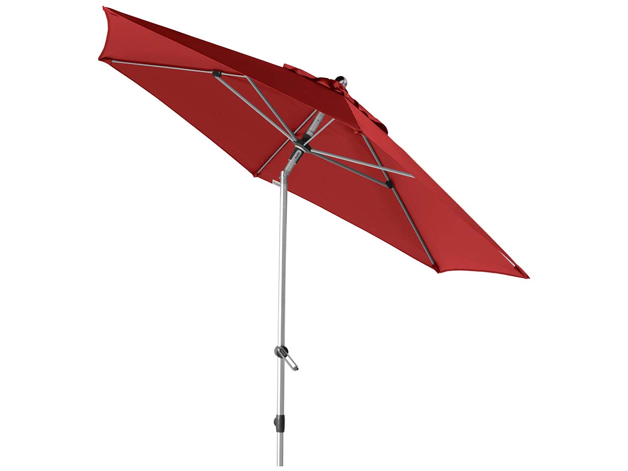 So lässt sich der Sommer auf der Terrasse oder im Garten stilvoll genießen: Der speziell für anspruchsvolle Nutzer entwickelte Sonnenschirm, schützt effektiv vor direkter Sonneneinstrahlung! Das Beste: Über die Auto-Tilt-Funktion ist es möglich, den Schirm in die gewünschte Knickposition zu bringen. Dafür hat der Schirm eine leichtgängige Designkurbel, die auch zum Öffnen genutzt wird. Um das Schirmdach noch besser an den Sonnenstand anzupassen, verfügt der Schirm über eine einfach zu bedienende Höhenverstellung (ca. 30 cm). Schutz vor Wind, Wetter und Sonne bietet auch das Dach: Das 180 g/m² schwere Polyestergewebe ist wasserabweisend und hat den höchsten UV-Schutz von 80+. Für die Reinigung lässt sich der Bezug abnehmen und per Handwäsche reinigen. Der Sonnenschirm ist für verschiedene Befestigungsvarianten geeignet. Ø 280 cm.