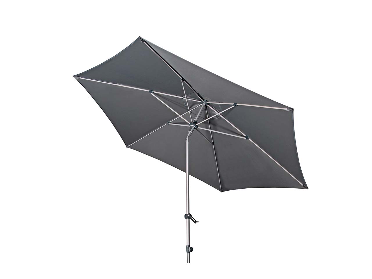So lässt sich der Sommer auf der Terrasse oder im Garten stilvoll genießen: Der speziell für anspruchsvolle Nutzer entwickelte Sonnenschirm schützt effektiv vor direkter Sonneneinstrahlung! Das Beste: Über die Auto-Tilt-Funktion ist es möglich, den Schirm in die gewünschte Knickposition zu bringen. Dafür hat der Schirm eine leichtgängige Designkurbel, die auch zum Öffnen genutzt wird. Um das Schirmdach noch besser an den Sonnenstand anzupassen, verfügt der Schirm über eine einfach zu bedienende Höhenverstellung (ca. 30 cm). Schutz vor Wind, Wetter und Sonne bietet auch das Dach: Das 180 g/m² schwere Polyestergewebe ist wasserabweisend und hat den höchsten UV-Schutz von 80+. Für die Reinigung lässt sich der Bezug abnehmen und per Handwäsche reinigen. Der Sonnenschirm ist für verschiedene Befestigungsvarianten geeignet. Ø 320 cm.