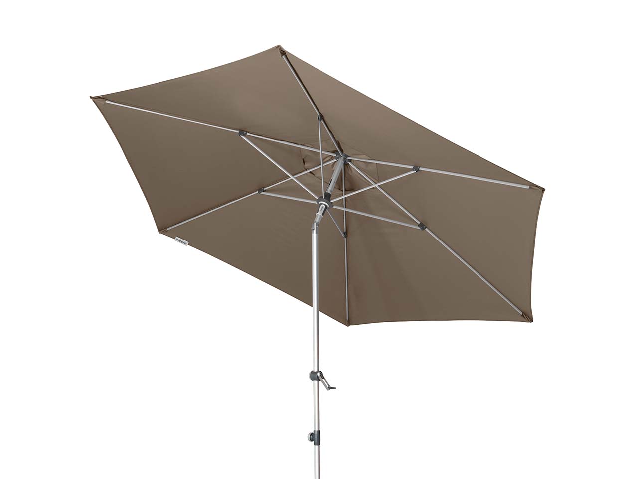Das Schirmdach besteht aus chlorfreiem Polyester in schwerer 180 g/m²-Qualität. Das Material ist wasserabweisend, witterungsbeständig und robust. Durch die exzellente Strapazierfähigkeit ist das Schirmdach außerordentlich langlebig und haltbar, sodass der Sonnenschirm über viele Jahre Freude bereitet. Zur langlebigen Qualität trägt auch das Gestell aus stabilem, langlebigem Aluminium bei.