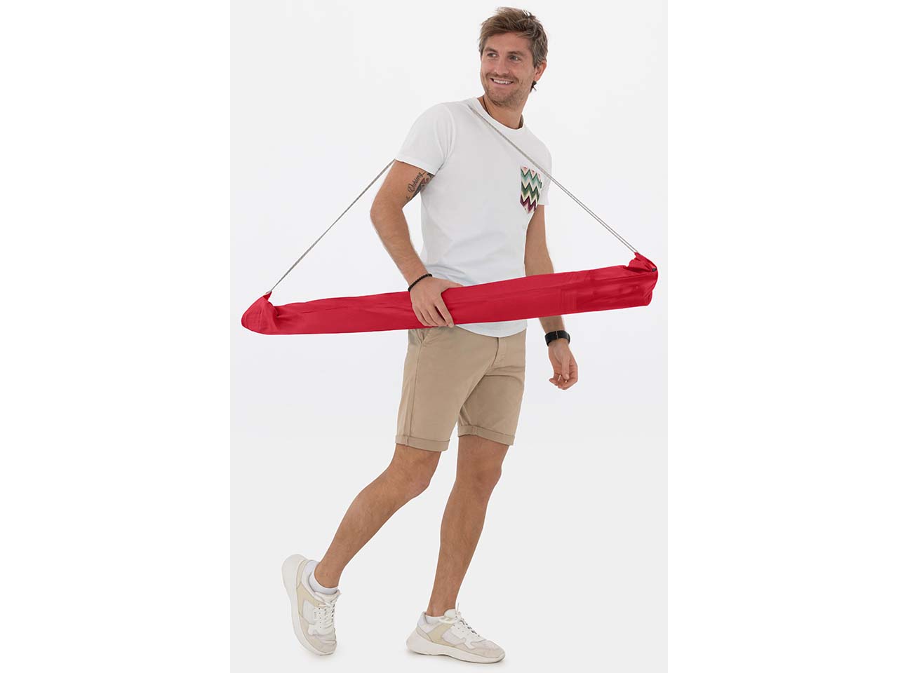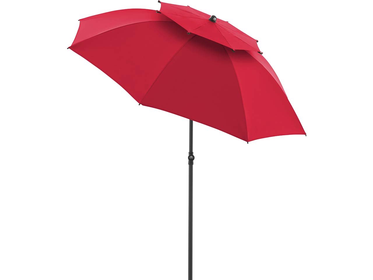 Ab an den Strand! Dieser Sonnenschirm schützt dabei mit LSF 50+ nicht nur vor UV-Strahlung, sondern er steht auch selbst bei starken Böen sicher und stabil. Dafür sorgt das große Windventil am Schirmdach: Wind strömt einfach durch. Das Schirmdach ist beidseitig neigbar, sodass man es immer perfekt an die Sonnenposition anpassen kann. Das robuste Aluminiumgestell gewährleistet zusätzliche Stabilität. In der praktischen Tragetasche ist der Strandschirm einfach transportiert und verstaut. H 238 cm.