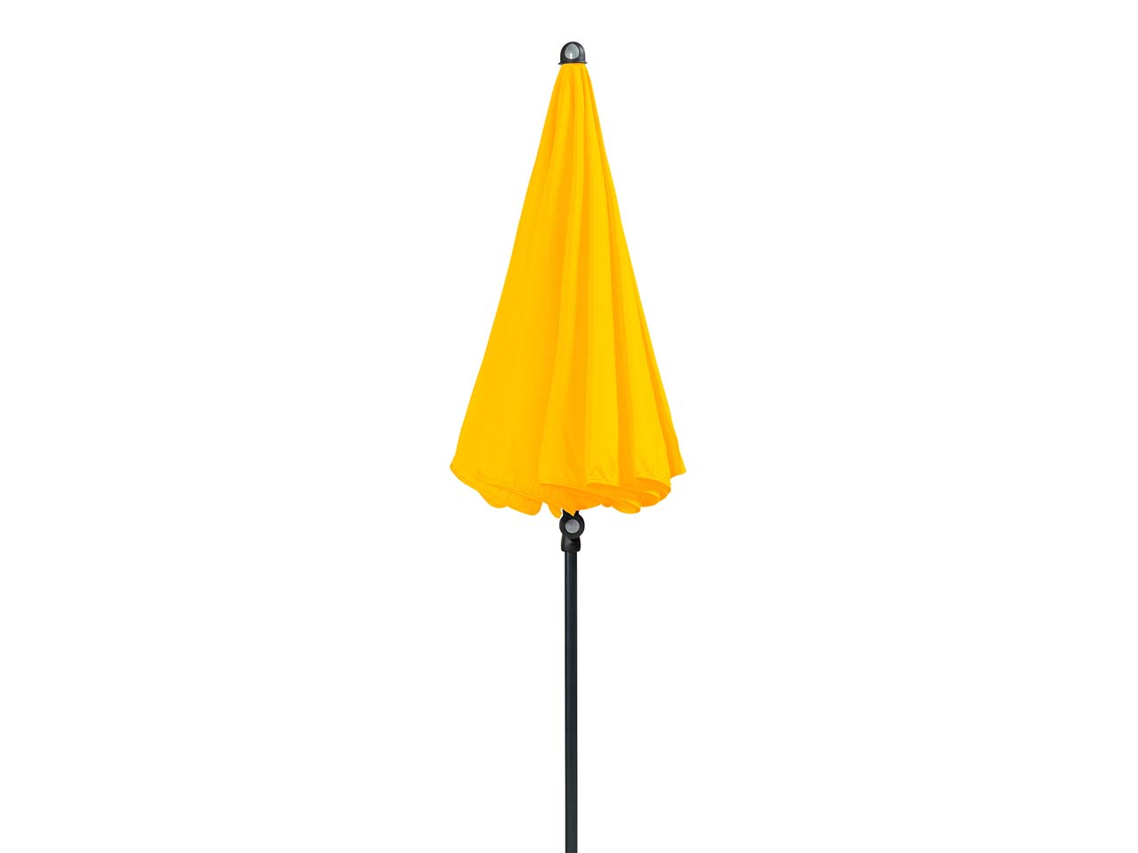 Das Schirmdach besteht aus chlorfreiem Polyester in schwerer 180 g/m²-Qualität. Das Material ist wasserabweisend, witterungsbeständig und robust. Durch die exzellente Strapazierfähigkeit ist das Schirmdach außerordentlich langlebig und haltbar, sodass der Sonnenschirm über viele Jahre Freude bereitet. Zur langlebigen Qualität trägt auch das Gestell aus hochwertigem Stahl in besonders stabiler Ausführung bei.