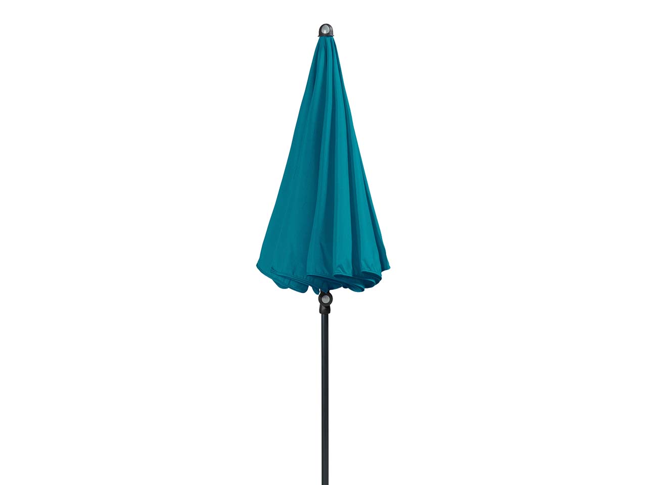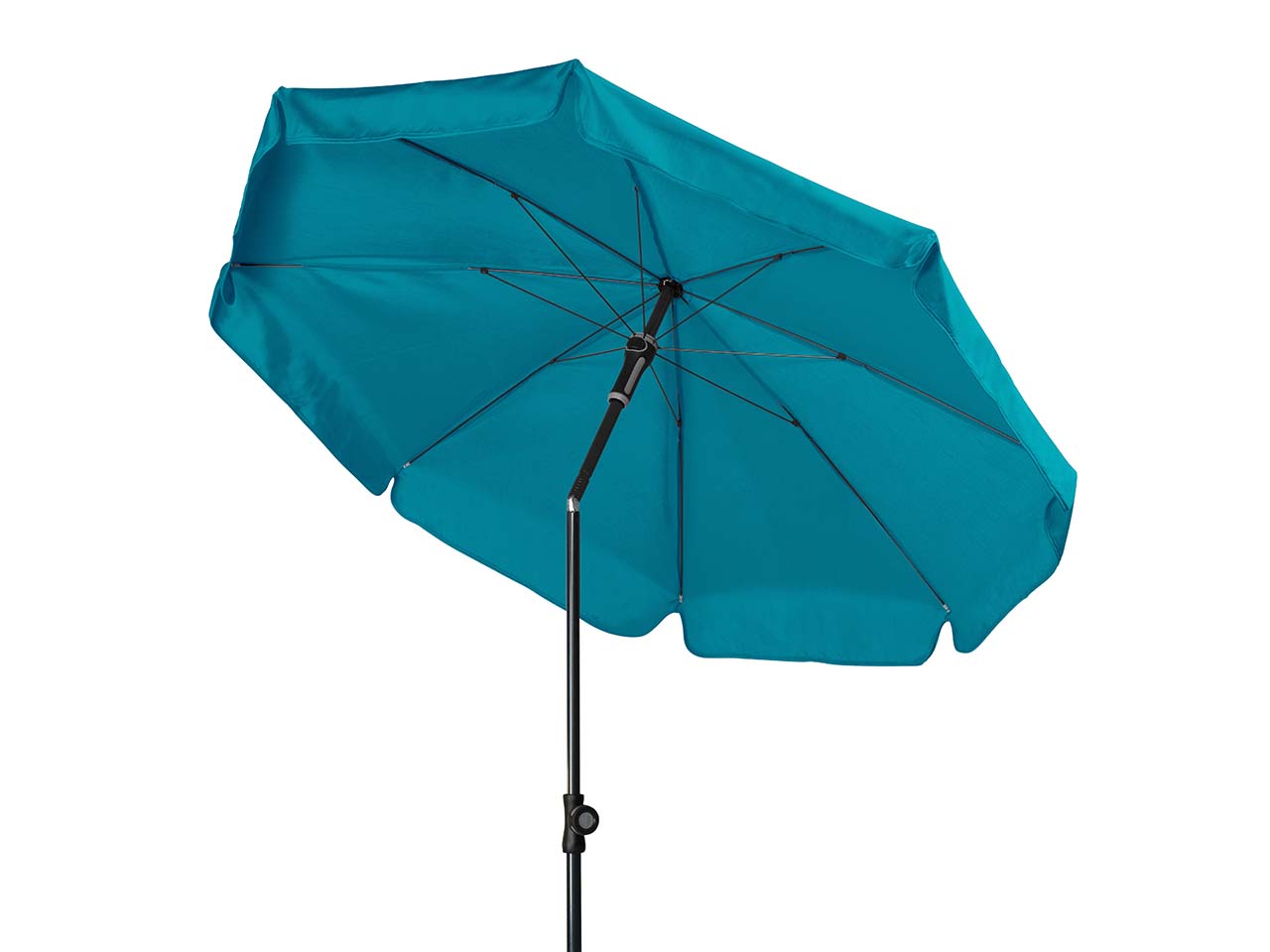 Das Schirmdach besteht aus chlorfreiem Polyester in schwerer 180 g/m²-Qualität. Das Material ist wasserabweisend, witterungsbeständig und robust. Durch die exzellente Strapazierfähigkeit ist das Schirmdach außerordentlich langlebig und haltbar, sodass der Sonnenschirm über viele Jahre Freude bereitet. Zur langlebigen Qualität trägt auch das Gestell aus hochwertigem Stahl in besonders stabiler Ausführung bei.
