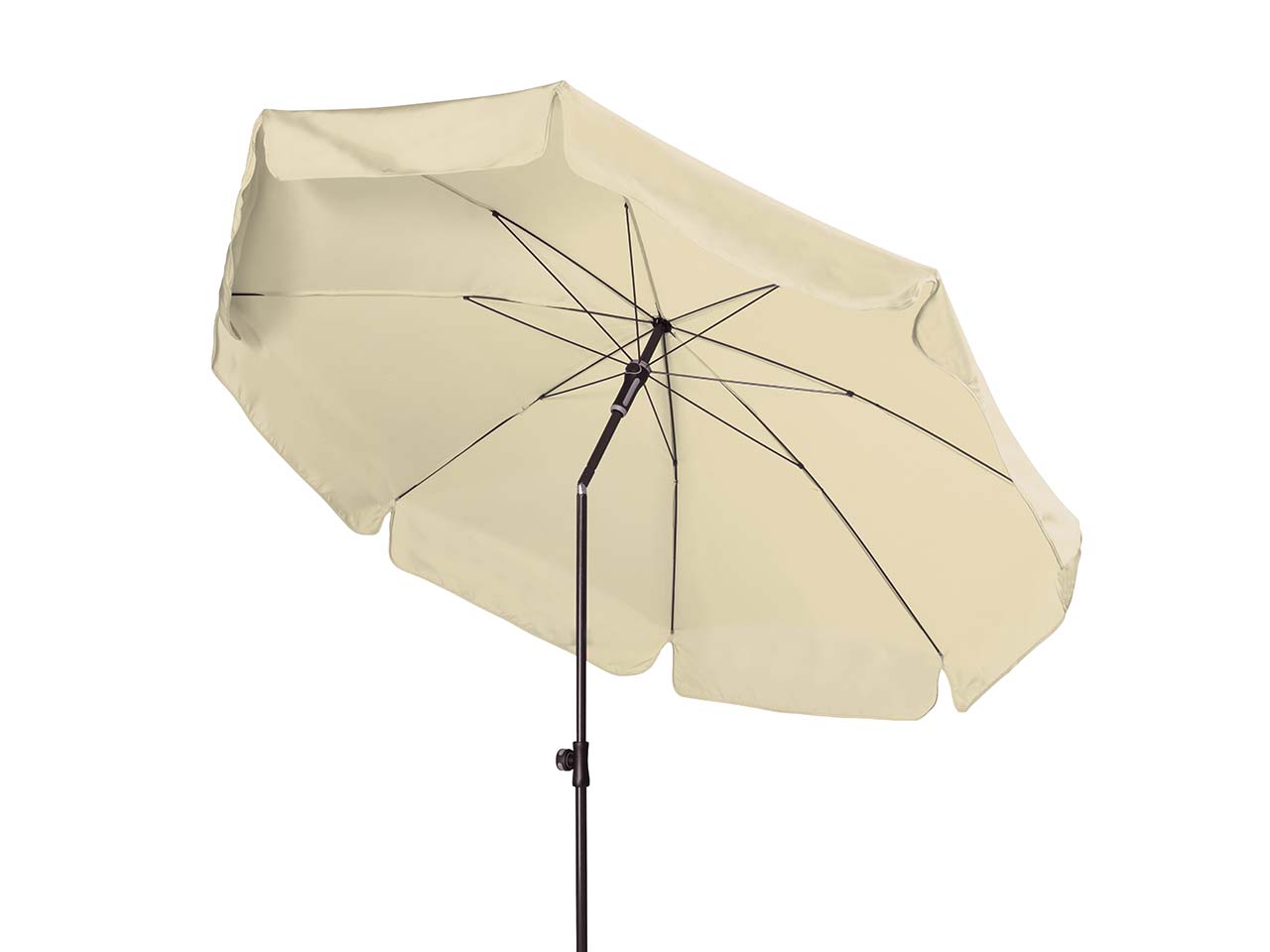 Das Schirmdach besteht aus chlorfreiem Polyester in schwerer 180 g/m²-Qualität. Das Material ist wasserabweisend, witterungsbeständig und robust. Durch die exzellente Strapazierfähigkeit ist das Schirmdach außerordentlich langlebig und haltbar, sodass der Sonnenschirm über viele Jahre Freude bereitet. Zur langlebigen Qualität trägt auch das Gestell aus hochwertigem Stahl in besonders stabiler Ausführung bei.