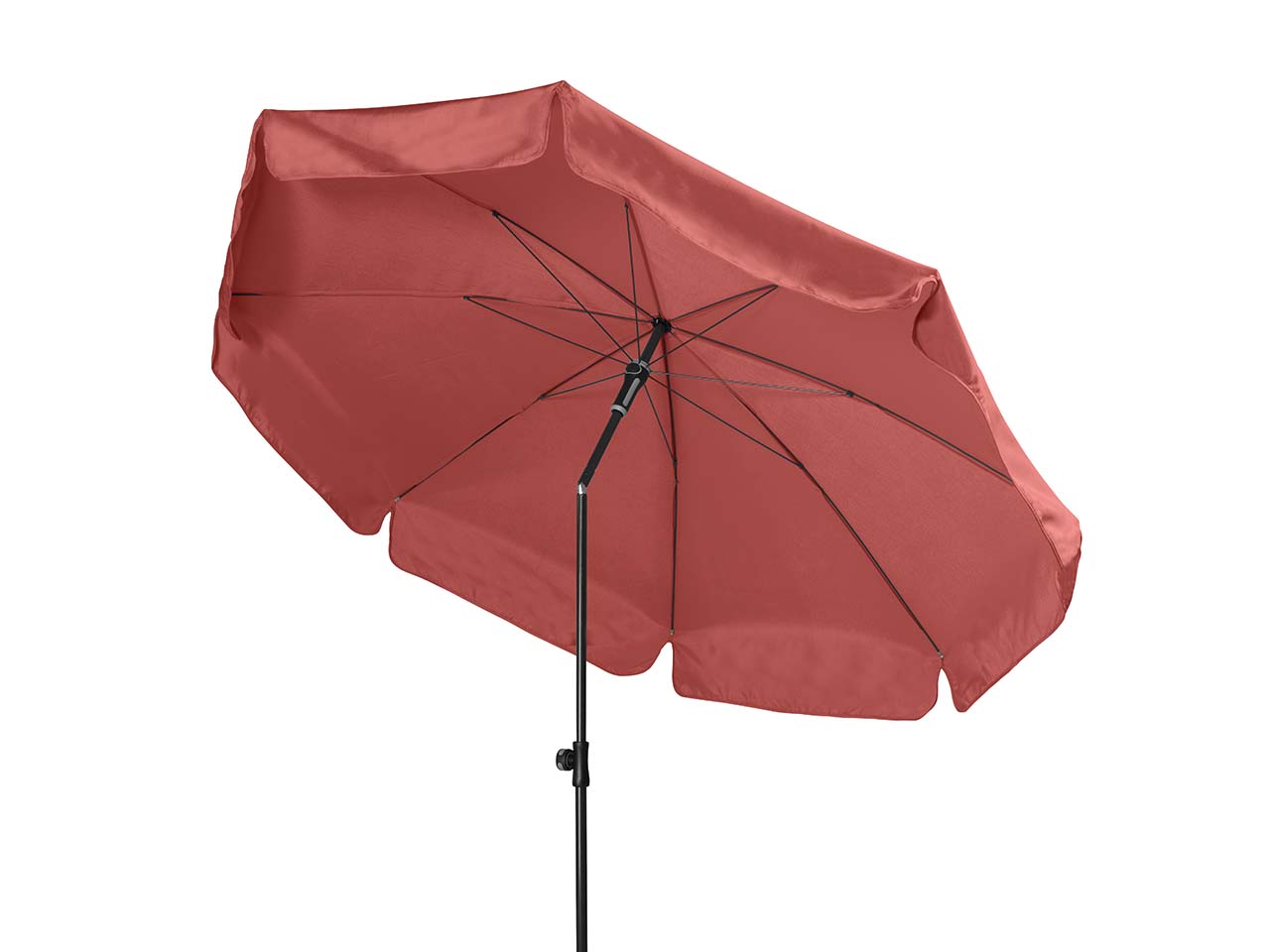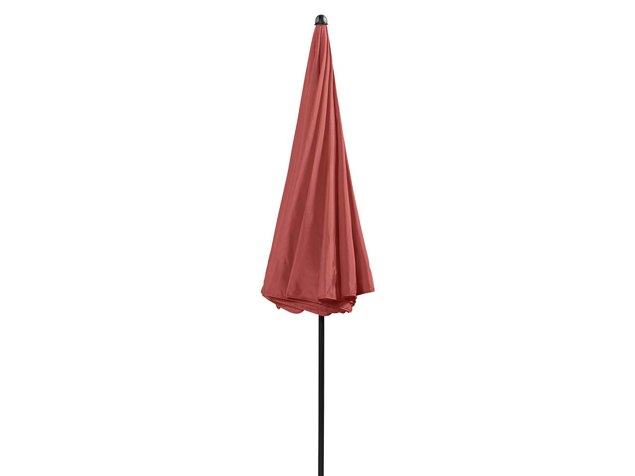 Das Schirmdach besteht aus chlorfreiem Polyester in schwerer 180 g/m²-Qualität. Das Material ist wasserabweisend, witterungsbeständig und robust. Durch die exzellente Strapazierfähigkeit ist das Schirmdach außerordentlich langlebig und haltbar, sodass der Sonnenschirm über viele Jahre Freude bereitet. Zur langlebigen Qualität trägt auch das Gestell aus hochwertigem Stahl in besonders stabiler Ausführung bei.