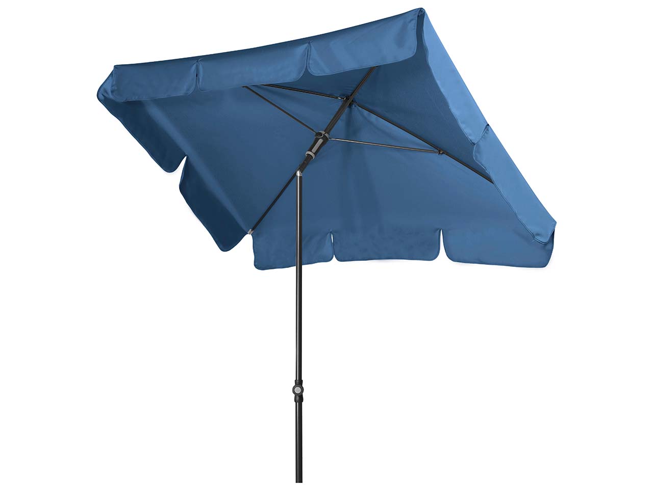Richtiges Sommerfeeling für Balkon und Terrasse: Mit diesem doppler Sonnenschirm lassen sich warme, sonnige Tage in vollen Zügen genießen. Der Schirm ist hochwertig verarbeitet und hat einen Bezug aus fleckschutzimprägniertem, verrottungsfreiem Polyester-Spezialgewebe in 180 g/m²-Qualität, das wetterbeständig ist und mit hoher Lichtechtheit sowie starkem UV-Schutz von 80 punktet. Der Bezug mit Volant ist außerdem optisch ein Highlight. Über den rutschfesten Schieber mit Druckknopf und das Handrad ist eine stufenlose Verstellung der Höhe möglich. Der rechteckige Sonnenschirm eignet sich auch für den gewerblichen Einsatz, z.B. in der Gastronomie. Der Bezug lässt sich abnehmen und per Handwäsche reinigen. Schirmgröße ca. 185 x 120 cm.
