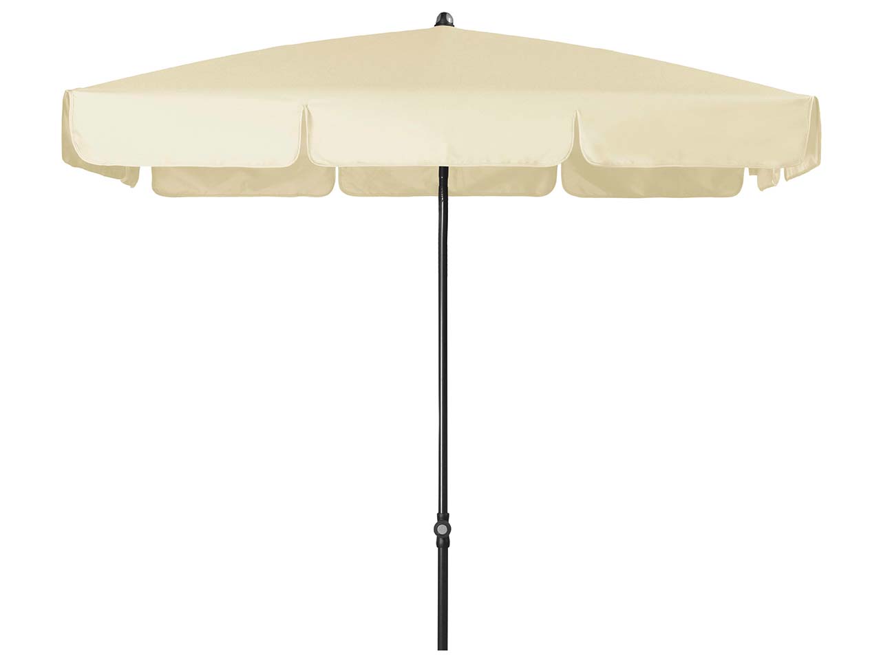 Richtiges Sommerfeeling für Balkon und Terrasse: Mit diesem doppler Sonnenschirm lassen sich warme, sonnige Tage in vollen Zügen genießen. Der Schirm ist hochwertig verarbeitet und hat einen Bezug aus fleckschutzimprägniertem, verrottungsfreiem Polyester-Spezialgewebe in 180 g/m²-Qualität, das wetterbeständig ist und mit hoher Lichtechtheit sowie starkem UV-Schutz von 80 punktet. Der Bezug mit Volant ist außerdem optisch ein Highlight. Über den rutschfesten Schieber mit Druckknopf und das Handrad ist eine stufenlose Verstellung der Höhe möglich. Der rechteckige Sonnenschirm eignet sich auch für den gewerblichen Einsatz, z.B. in der Gastronomie. Der Bezug lässt sich abnehmen und per Handwäsche reinigen. Schirmgröße ca. 185 x 120 cm.