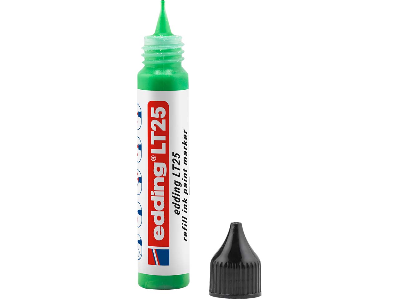Tinte leer? Kein Problem! Die Nachfülltinte mit Tropfdosiersystem ist speziell für die edding EcoLine Lackmarker 50, 51 und 52 entwickelt. Die wasserbasierte Tinte lässt sich schnell und einfach nachfüllen. Danach ist der Marker sofort wieder einsatzbereit.