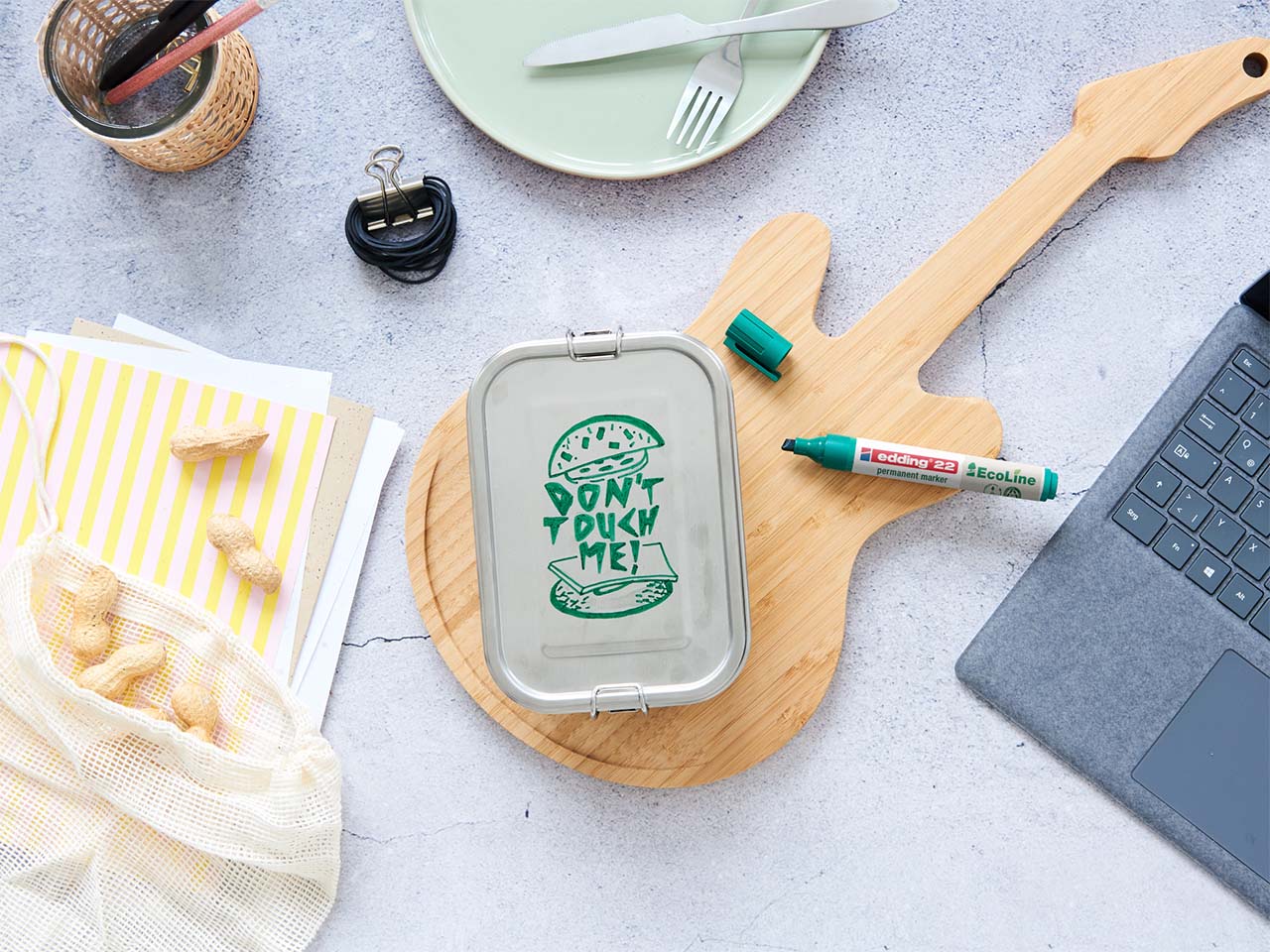 Der hält dauerhaft: Der Permanent-Marker "EcoLine 22" schreibt auf vielen Materialien wie Glas, Metall und Kunststoff. Die geruchsarme Tinte ist lichtbeständig, wasserfest, schnelltrocknend und auf fast allen Oberflächen abriebbeständig. Die Keilspitzen sind austauschbar und der Marker kann nachgefüllt werden. Die Kunststoffteile bestehen zu mindestens 90 % aus Recyclingmaterial. Mit Keilspitze, Strichstärke 1-5 mm.