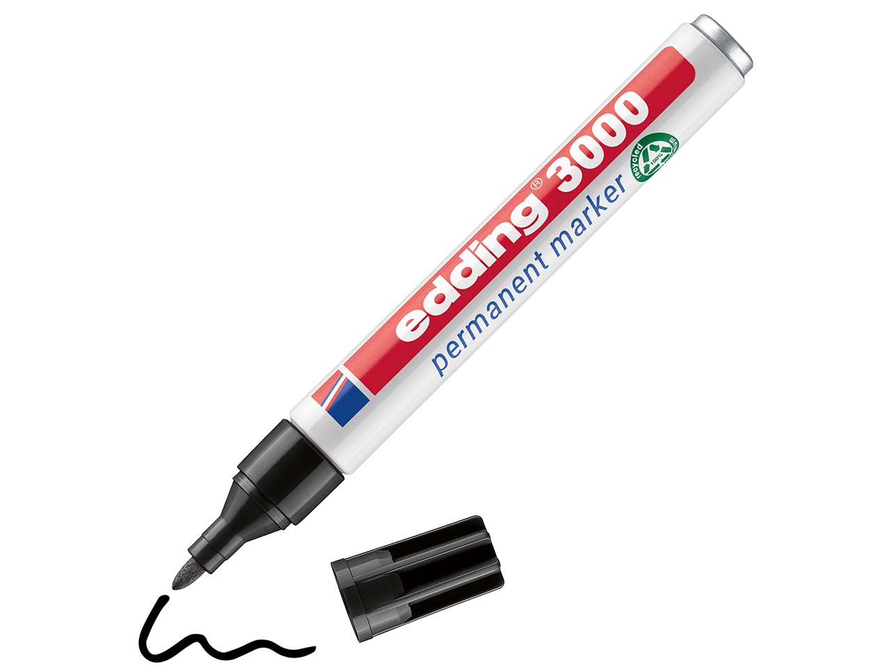 Hochwertige Permanent-Marker von edding mit Gehäuse aus 100 % recyceltem Aluminium zum dauerhaften Beschriften und Markieren. Die Tinte schreibt auf vielen Materialien wie Glas, Metall und Kunststoff. Sie ist geruchsarm, lichtbeständig, schnelltrocknend, wisch- und wasserfest. Die Schreibspitzen sind austauschbar und die Tinte lässt sich nachfüllen. Kappe mit Clip und Mundstück in Schreibfarbe.