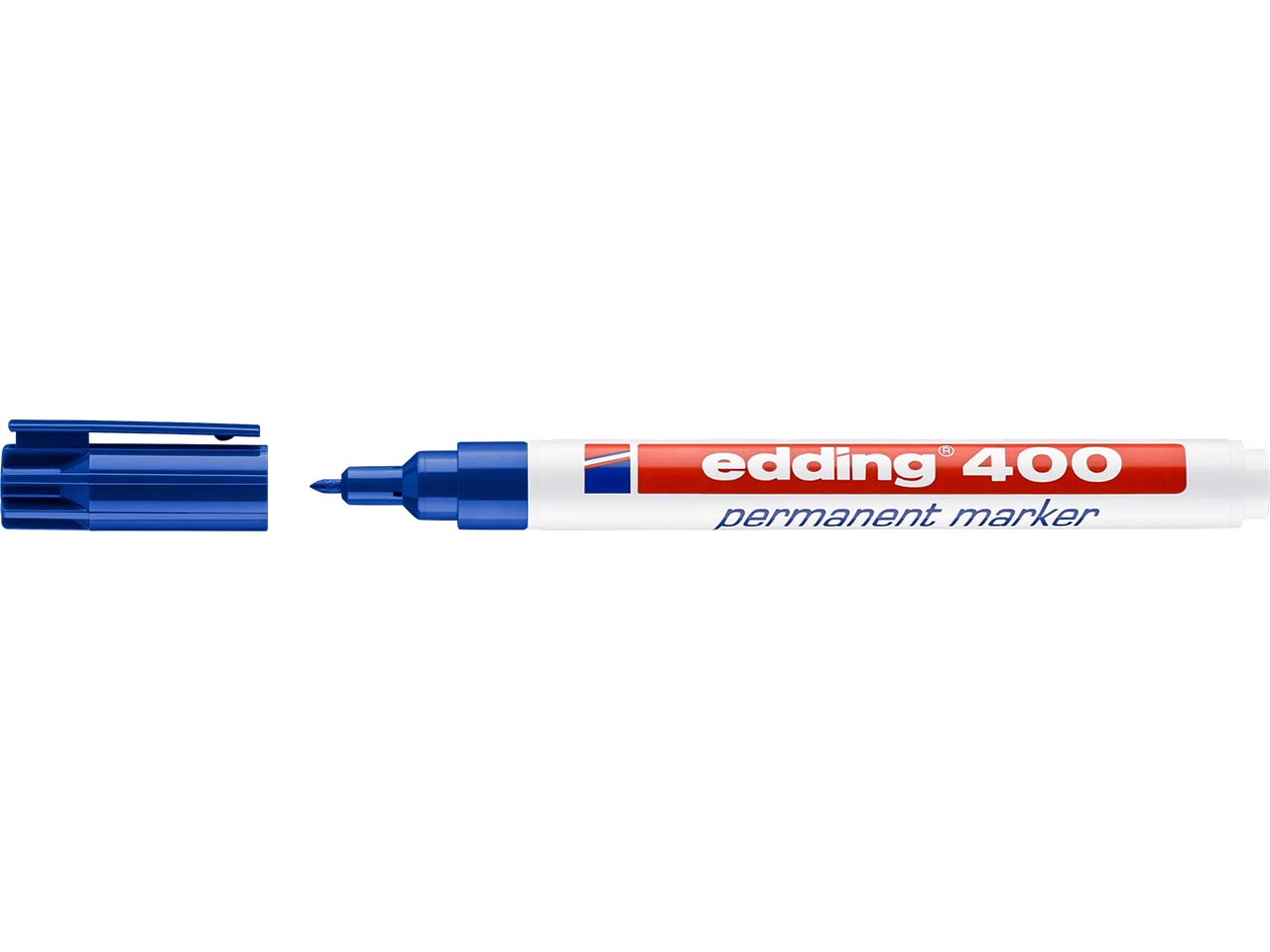 Für extra feine Linienführung ist der nachfüllbare edding Permanent-Marker "400" ideal. Austauschbare Rundspitze. Schreibt auf fast allen Materialien. Geruchsarme, wisch- und wasserfeste Tinte. Strichstärke 1 mm. Farbe blau.