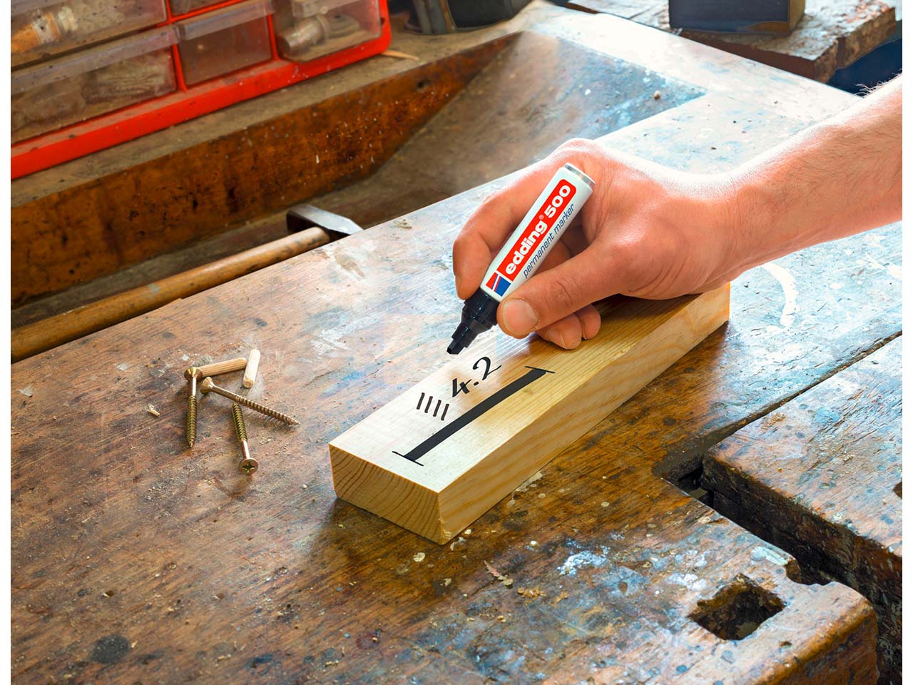 Um Notizen oder Markierungen dauerhaft anzubringen, braucht es einen wasserfesten Marker. Eine erstklassige Wahl sind edding Permanent-Marker "500". Der Marker mit Keilspitze eignet sich optimal für Markierungen auf Papier, Karton, Folie, Kunststofff, Metall, Glas, Holz, Leder und Stein. Mit der Keilspite lässt sich bei der Breite der Striche variieren.