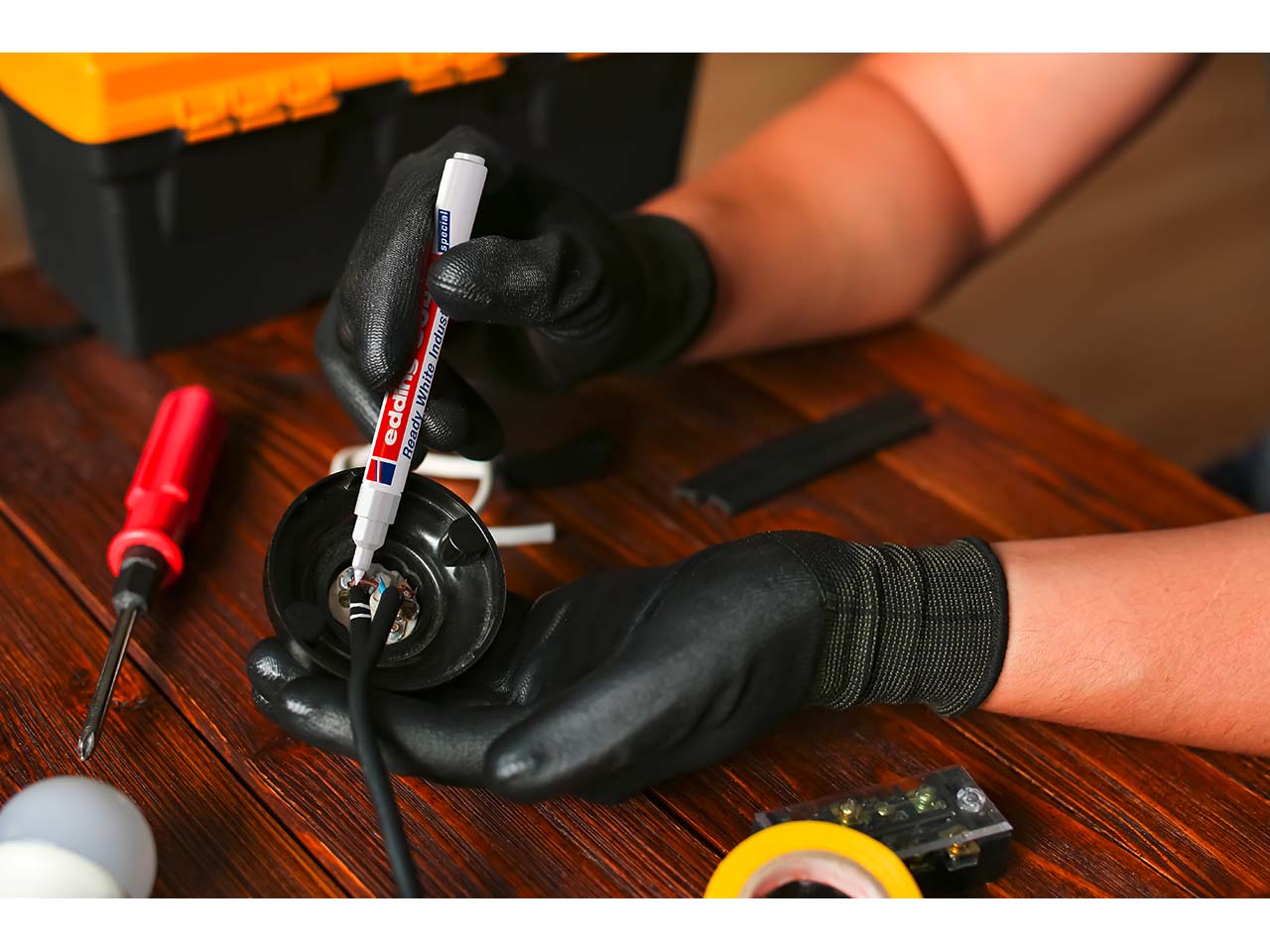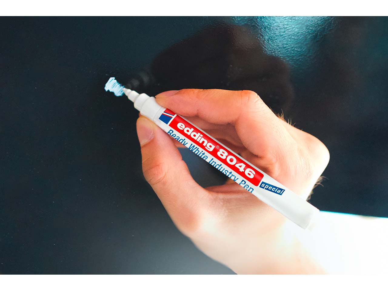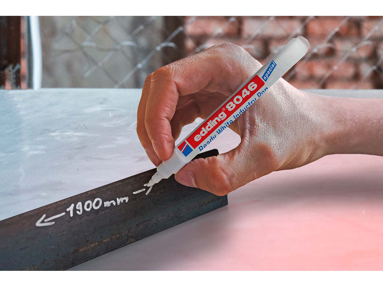 Kein Schütteln, kein Pumpen – dieser Permanentmarker von edding ist sofort einsatzfähig! Der „8046“ ist besonders deckend und so für viele industrielle Anwendungen geeignet. Dank abrieb- und wasserfester Tinte kann er sogar im Außenbereich eingesetzt werden! Die permanente Tinte trocknet schnell. Es können alle Oberflächen wie Metall, Kunststoff, Holz, Glas, Folie, Porzellan, Gummi, Leder, Stein, Keramik oder beschichtetes Papier dauerhaft markiert werden. Der Permanentmarker eignet sich für Kabelmarkierungen, Möbelmarkierungen und vieles mehr.
