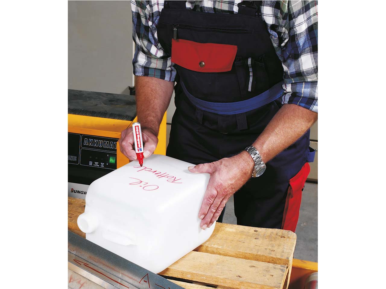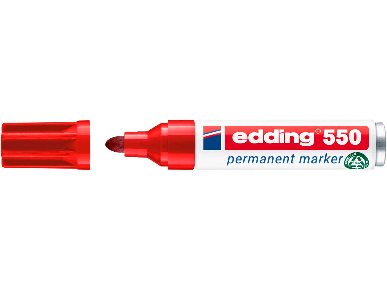 Für dauerhafte Markierungen: der edding Permanent-Marker "550". Mit seinem Gehäuse aus Aluminium ist der Marker sehr robust. Die Tinte auf Alkoholbasis ist geruchsarm, wisch- und wasserfest und lässt sich bei Bedarf nachfüllen. Die Rundspitze ist ebenfalls austauschbar. Strichstärke 3-4 mm. Farbe rot.
