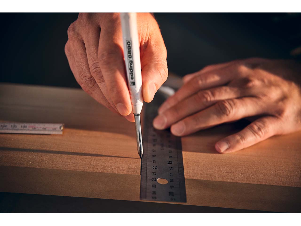 - Zum präzisen Markieren auf fast allen Oberflächen
