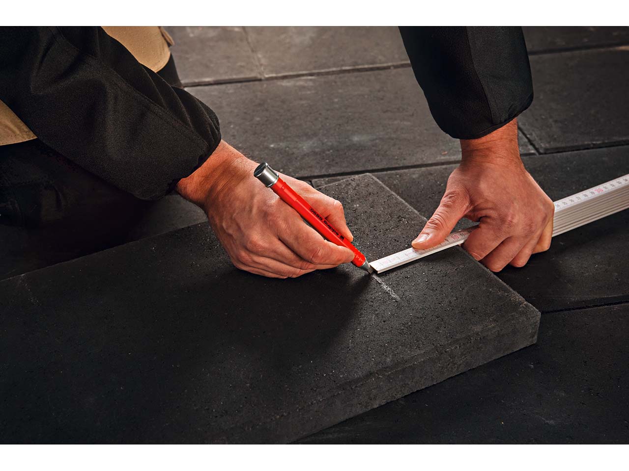 Mit diesem automatischen Zimmermannsbleistift lassen sich auf verschiedenen harten und rauen Oberflächen wie Holz, Stein oder Beton präzise Markierungen anbringen. Der Aluminiumschaft ist bewusst robust und langlebig gehalten, sodass selbst bei anspruchsvollen Anwendungen die Mine nicht abbricht. Die Einhandbedienung des Tieflochbleistifts vereinfacht die Arbeit. Dank praktischem Clip am Holster kann der Zimmermannsbleistift am Gürtel oder an einer Tasche befestigt werden. Der Stift mit Rechteckmine lässt sich ganz einfach mit Minen nachfüllen – so kann man den Stift lange benutzen.
