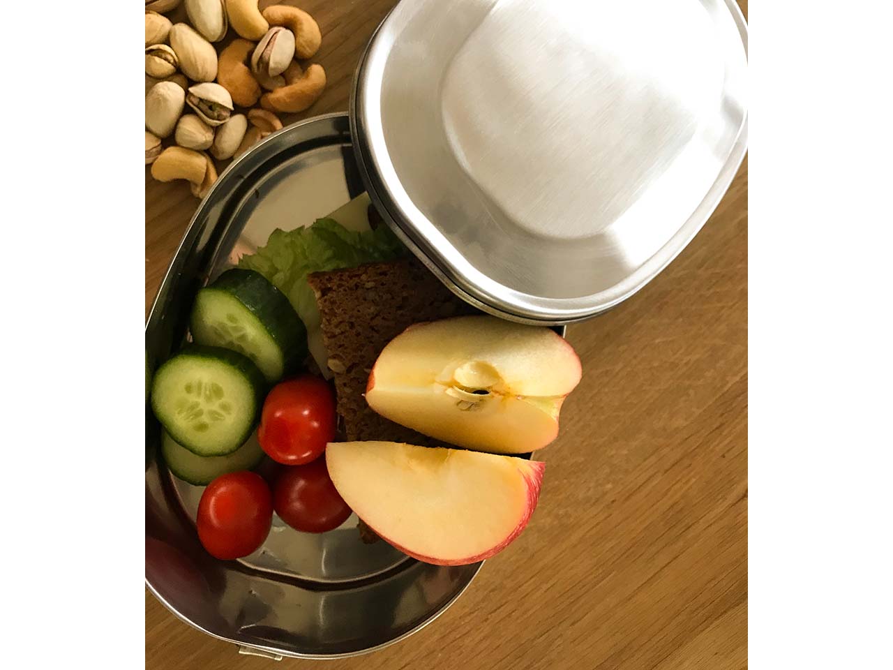 Das Besondere an rostfreiem Edelstahl: er hat eine selbstheilende Oberfläche. Das mattierte Material bildet nämlich von selbst eine Passivschicht. Auch bei Beschädigungen bildet sich diese transparente Schutzschicht wieder aus und somit bleibt die Vesperbox auch nach Jahrzehnten so gut wie neu. Zudem sichern unabhängige Prüfstellen wie das Institut Fresenius mit durchlaufenden Tests die hochwertige Qualität des Produkts. Sämtliche Abwicklungsprozesse im Unternehmen werden bei den Kontrollen miteingeschlossen.