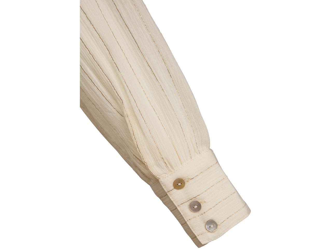 Dieses modische Teil ist ein echtes Highlight im Kleiderschrank! Die Bluse in Wickeloptik hat eine zartweiche Haptik und einen besonders hohen Tragekomfort, der durch den Einsatz von Bio-Baumwolle entsteht. Dazu ist ein kleiner Anteil Lurex im Textil verarbeitet. Das bandförmige Garn zeichnet sich durch einen typischen Glanz aus, der für spannende Schimmereffekte sorgt. Die Bluse eignet sich so hervorragend für schicke Anlässe wie Events und Partys. Der V-Ausschnitt, die Bundabschlüsse mit Knöpfen sowie die reguläre Passform runden das Oberteil perfekt ab.
