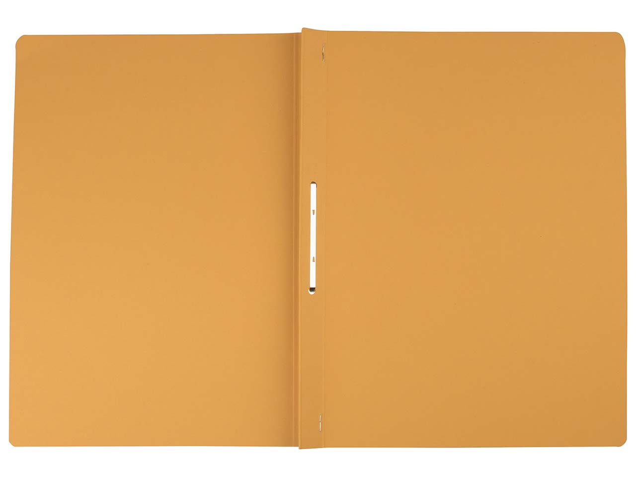 Schnellhefter aus Recyclingkarton mit Liniendruck auf Vorder- und Rückendeckel. Mit gerundeten Ecken, Heftzunge und Abdeckleiste aus Metall. Für Format DIN A4, Füllhöhe ca. 2 cm für 200 Blatt (80 g/m²). B 24 x T 31,8 cm. Farbe gelb.