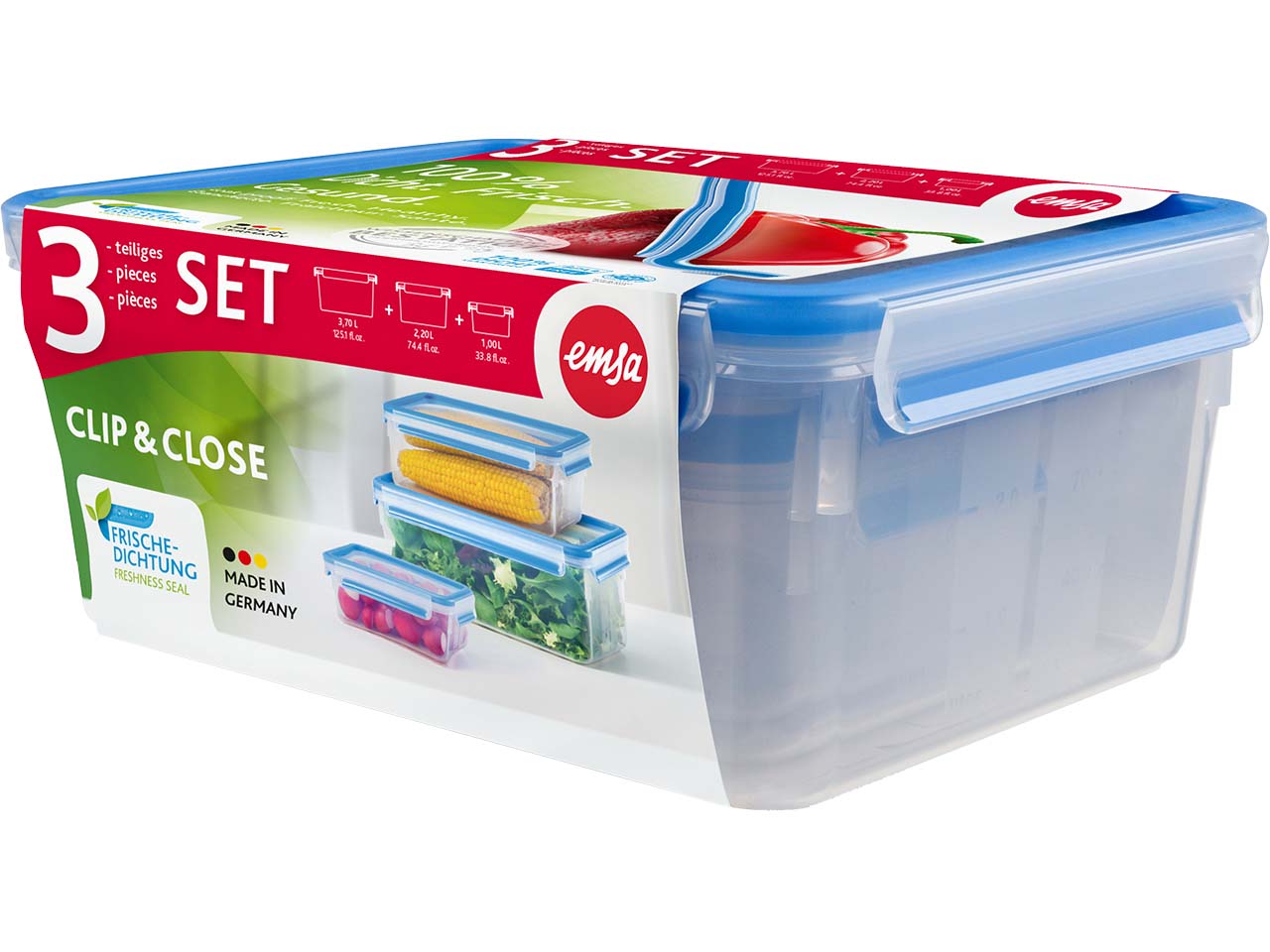 EMSA 3er-Set Frischhaltedosen "Clip & Close" 1 l/2,2 l/3,7 l