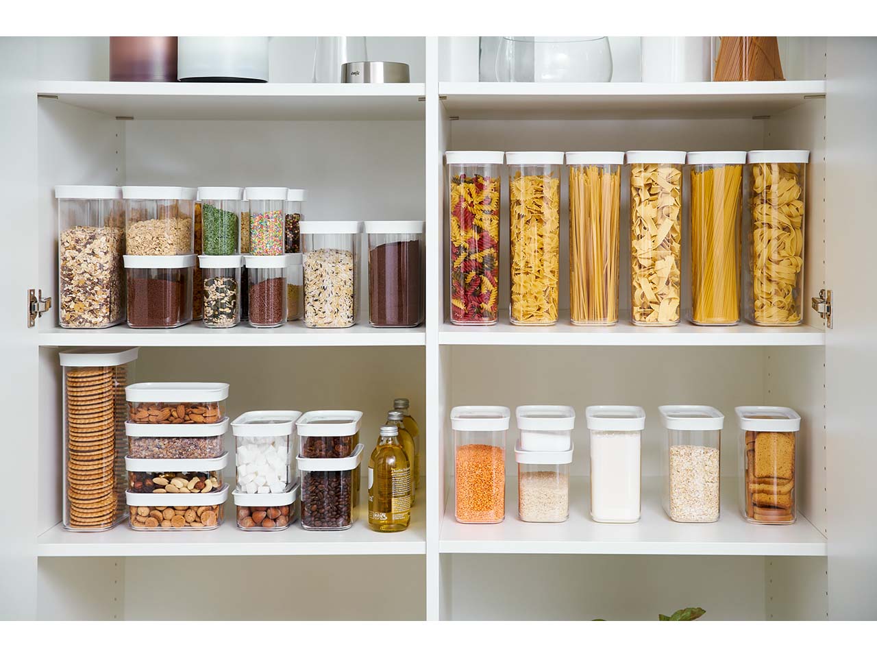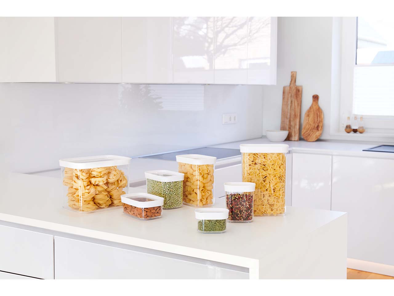 Passen in fast jede Küche – das 7er-Set Vorratsdosen ist auf Normmaße von Küchenmöbeln abgestimmt! Die Dosen in langlebiger, hygienischer Qualität eignen sich hervorragend zur Aufbewahrung von Trockenvorräten wie Nüssen, Reis, Pasta, Mehl, Zucker und mehr. Die verschiedenen Größen helfen dabei, mehr Ordnung und Übersicht zu schaffen. Die Vorratsdosen mit Clack-Verschluss schützen den Inhalt vor Feuchtigkeit und Schädlingen. Sie können ganz einfach übereinander gestapelt werden. Inhalt 2 x 0,45 l, 2 x 1 l, 2 x 1,6 l, 1 x 2,2 l.
