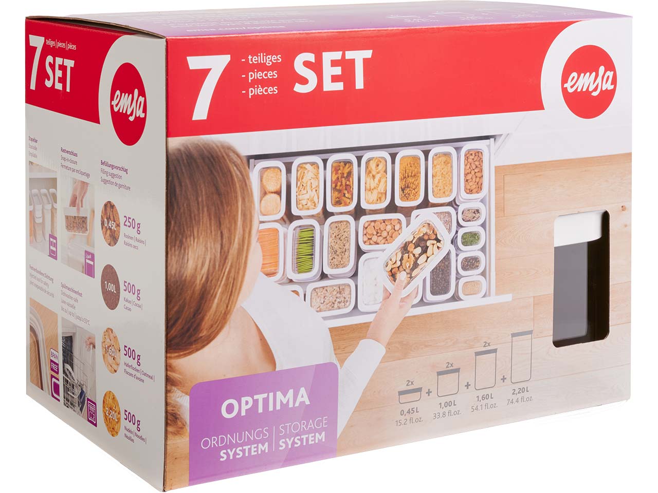 EMSA 7er-Set Vorratsdose "OPTIMA" 2x0,45 l/2x1 l/2x1,6 l/2,2 l