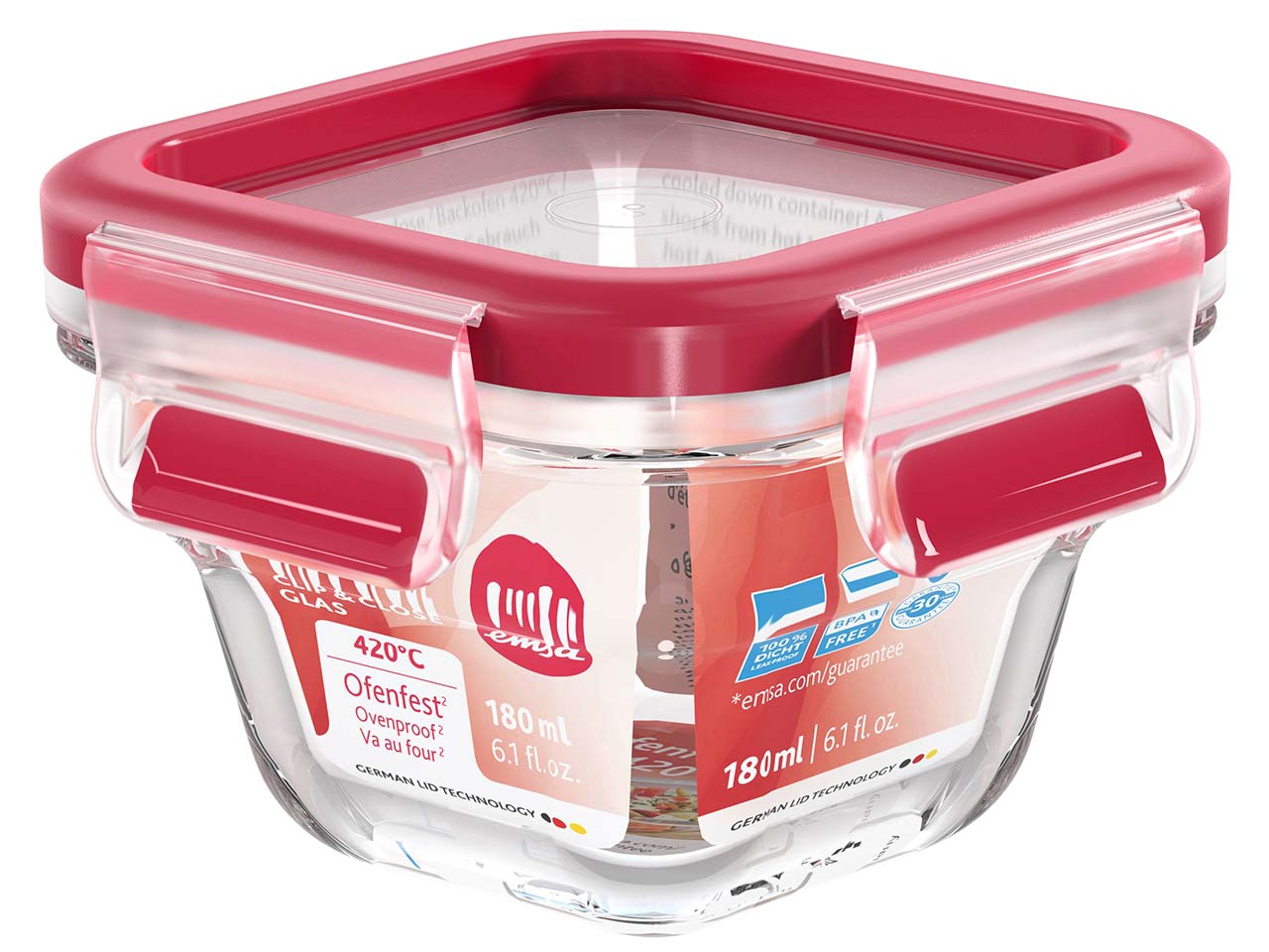 EMSA Frischhaltedose "Clip & Close" aus Glas, quadratisch, 0,18 l