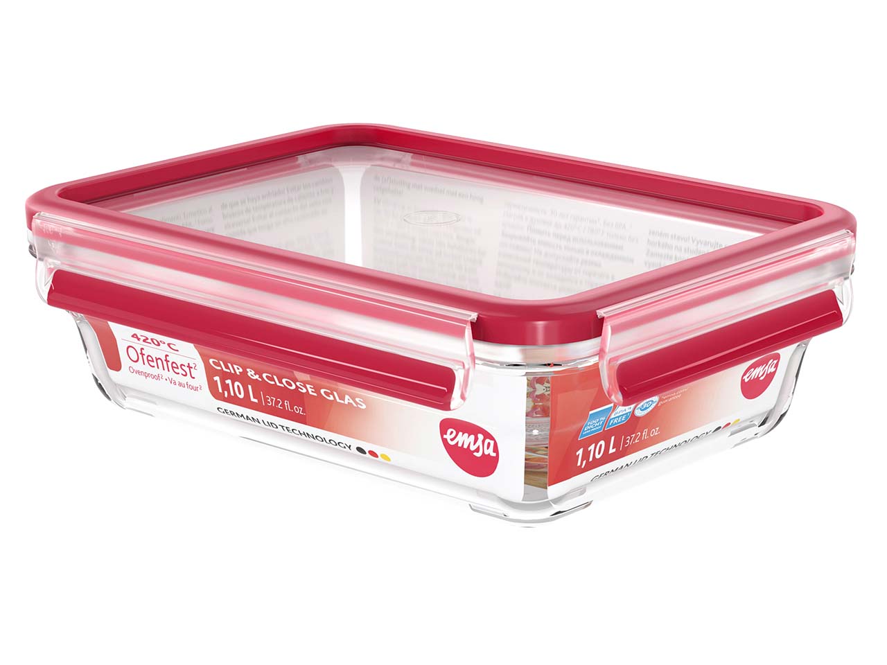 EMSA Frischhaltedose "Clip & Close" aus Glas, rechteckig, 1,1 l