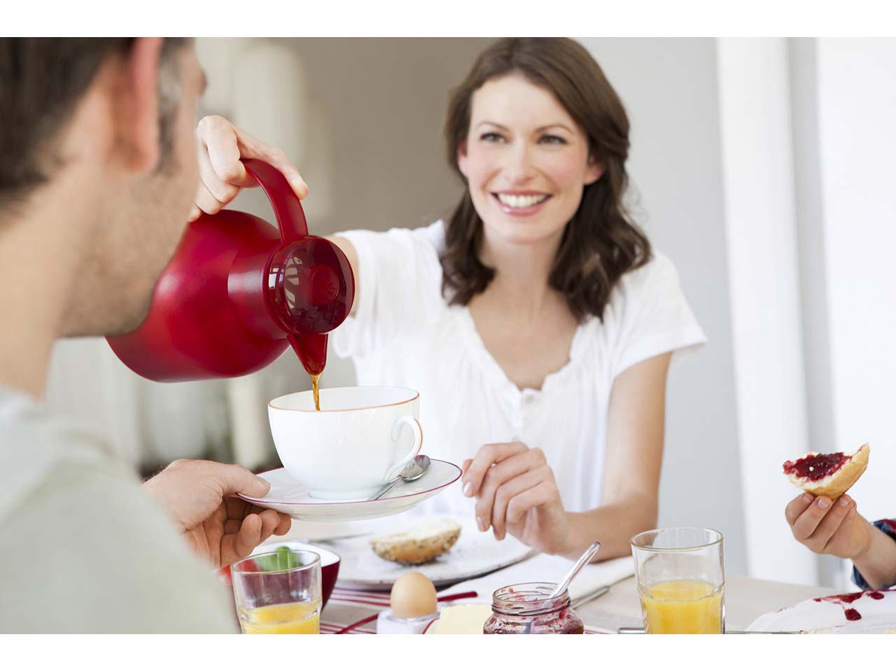 Diese Isolierkanne begeistert schon beim Anblick: Die transluzente Farbgebung unterstreicht das moderne Design. Sie ist ideal, um es sich gemütlich zu machen und eine Tasse in Gesellschaft zu genießen. Die exzellente Funktionalität zeigt sich in dem Glas-Isolierkolben, der Heißgetränke bis zu 12 Stunden warm hält. Die Bedienung gestaltet sich dank Quick Press ganz einfach per Knopfdruck. Mit einem Fassungsvermögen von 1 l.