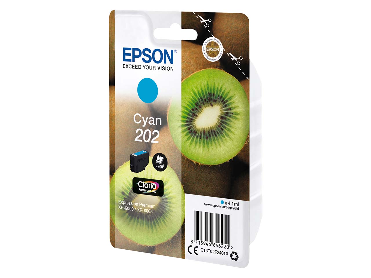 Die originale Epson Tintenpatrone 202 mit der Herstellernummer C113T02F24010 ist für alle Farbausdrucke perfekt geeignet. Sie ist passend für die Modelle Expression Photo XP-6000 und 6005. Bei 5 % Deckung reicht die Tintenpatrone für rund 300 Ausdrucke. Farbe cyan.