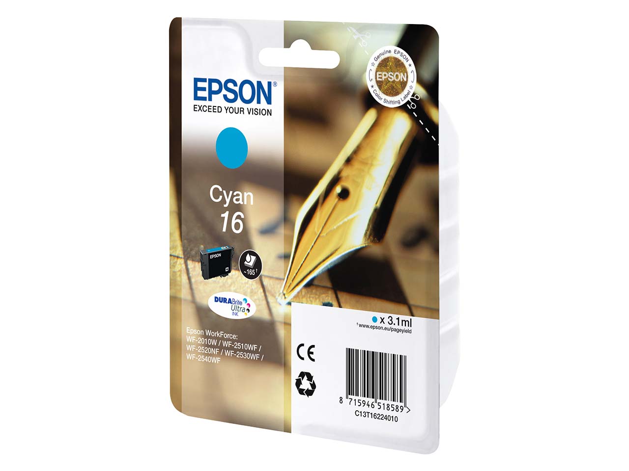 Erzielen Sie mit der originalen Epson Tintenpatrone T1622/12 optimale Druckergebnisse. Die Patrone ist passend für verschiedene Modelle des WorkForce. Bei 5 % Deckung reicht die Tintenpatrone für den Druck von ca. 165 Seiten. Farbe cyan.
