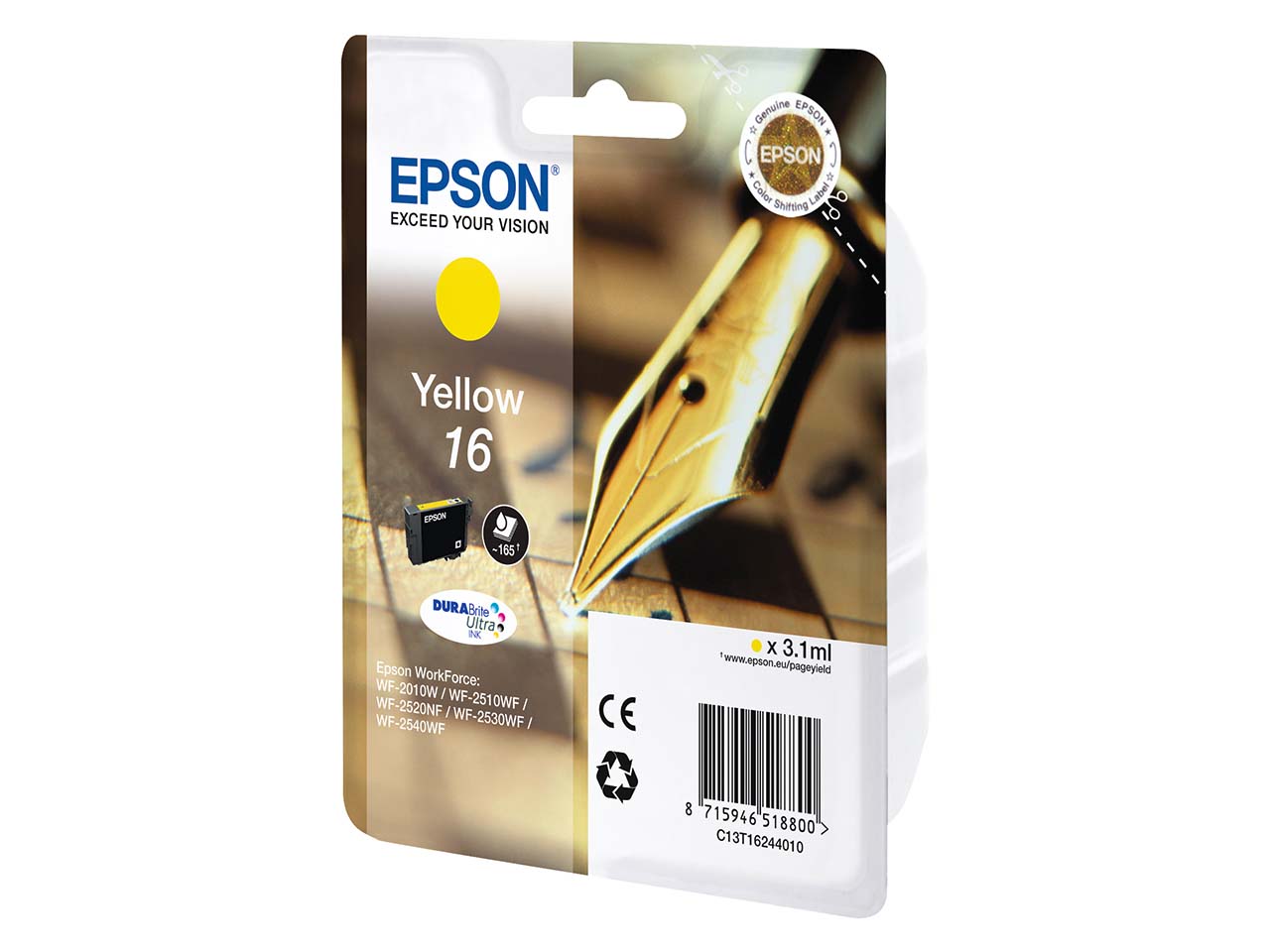 Drucken Sie Bilder, Texte und Grafiken mit der originalen Epson Tintenpatrone T624/16 in optimaler Qualität. Die Patrone ist passend für verschiedene Modelle des WorkForce und reicht bei 5 % Deckung für rund 165 Ausdrucke. Farbe gelb.