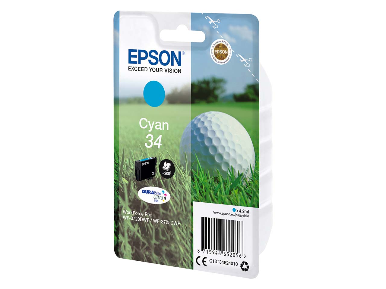 Die originale Epson Tintenpatrone T3462/34 mit der Herstellernummer C13T34624010 druckt Bilder, Texte und Grafiken in hervorragender Qualität. Sie ist passend für die Modelle WorkForce Pro WF-3700, 3720 und 3725. Bei 5 % Deckung reicht die Tintenpatrone für bis zu 300 Ausdrucke. Farbe cyan.