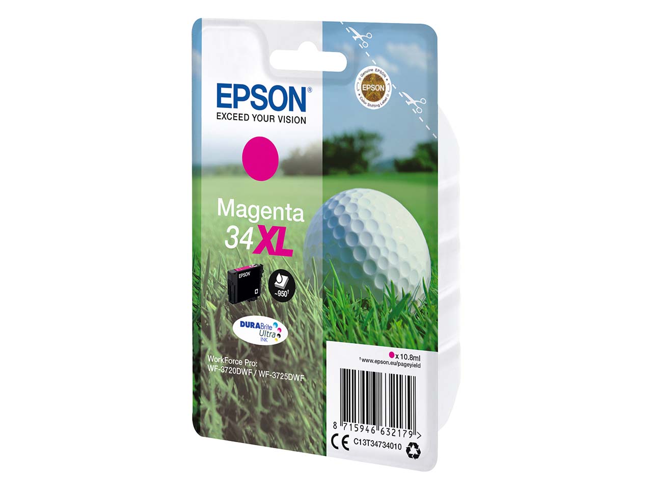 Die Epson Tintenpatrone T3473/34XL mit der Herstellernummer C13T34734010 druckt Bilder und Grafiken in hervorragender Qualität aus. Sie ist passend für die Modelle WorkForce Pro WF-3700, 3720 und 3725. Die Tintenpatrone reicht bei 5 % Deckung für bis zu 950 Ausdrucke. Farbe magenta.